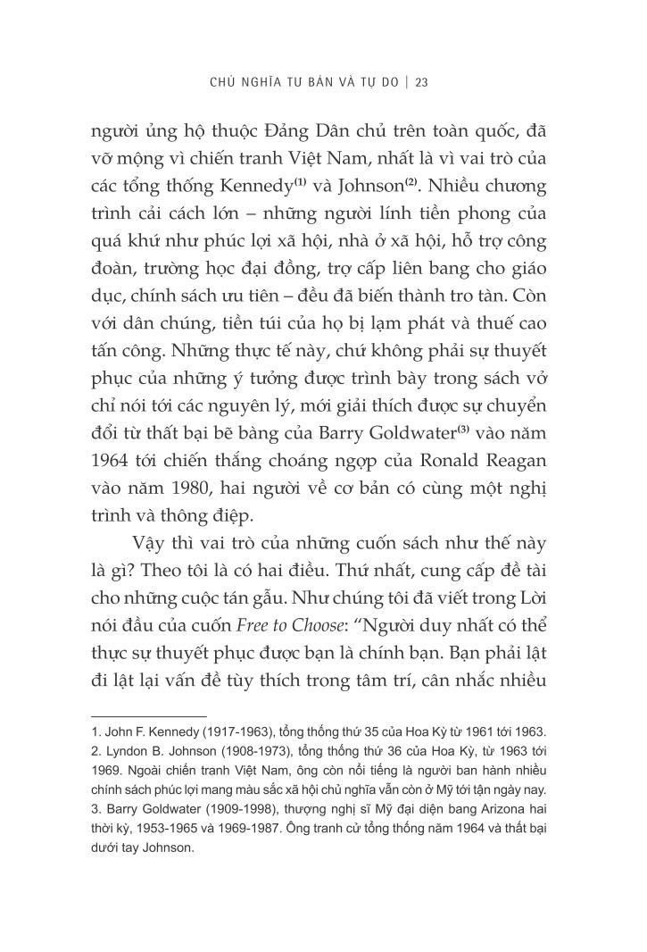 Cuốn sách này tập hợp một loạt các bài giảng của Milton Friedman – nhà kinh tế "có ảnh hưởng lớn nhất nửa sau thế kỷ 20" (theo The Economist); được phát hành lần đầu vào năm 1962, nhưng những vấn đề tác giả đặt ra vẫn giữ tầm ảnh hưởng hơn 40 năm sau đó và trở thành kinh điển. Đó là những câu hỏi lớn như: