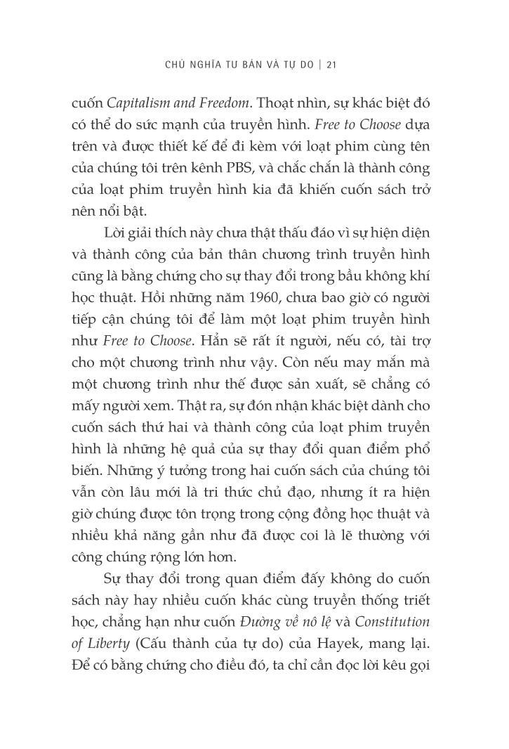 Cho đến nay, chúng ta đều đã thấy sức mạnh của sự thay đổi, cũng như sự phát triển nào cũng đòi hỏi sự thay đổi tương ứng. Và cuốn sách này sẽ góp phần “xây dựng những giải pháp thay thế cho các chính sách hiện hữu, duy trì sức sống và sự sẵn có của những giải pháp đó cho tới khi điều trước kia là bất khả nay đã là không thể tránh khỏ”