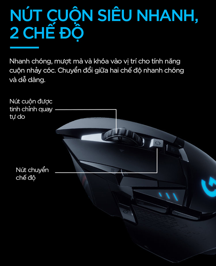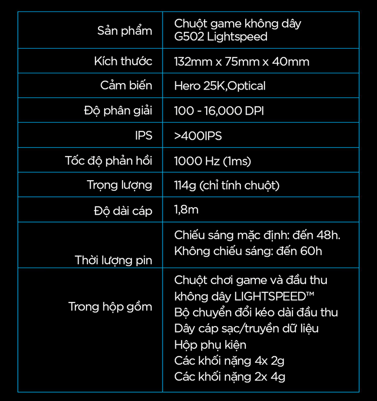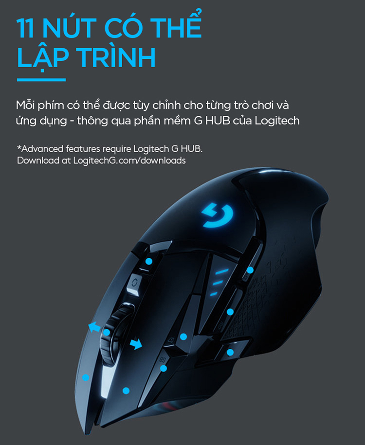 Thông số kỹ thuật Chuột game không dây Lightspeed Logitech G502 - Hàng chính hãng
