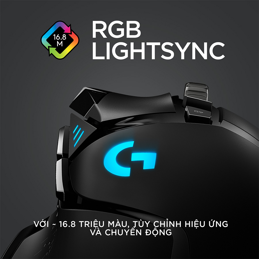 LIGHTSYNC RGB toàn dải, hoàn toàn có thể tùy chỉnh được phản ứng thông minh với trò chơi, âm thanh hoặc màu sắc màn hình của bạn. Thiết lập tất cả thiết bị RGB của Logitech G để đồng bộ hóa cùng nhau. Thiết lập ánh sáng trong gần 16,8 triệu màu để phù hợp với căn phòng và thiết bị. Tạo ra hiệu ứng hình động RGB của riêng bạn. Sự lựa chọn tùy thuộc vào bạn. RGB và nhiều hơn nữa, đều trong tầm kiểm soát của bạn, tất cả thông qua phần mềm HUB G của Logitech.