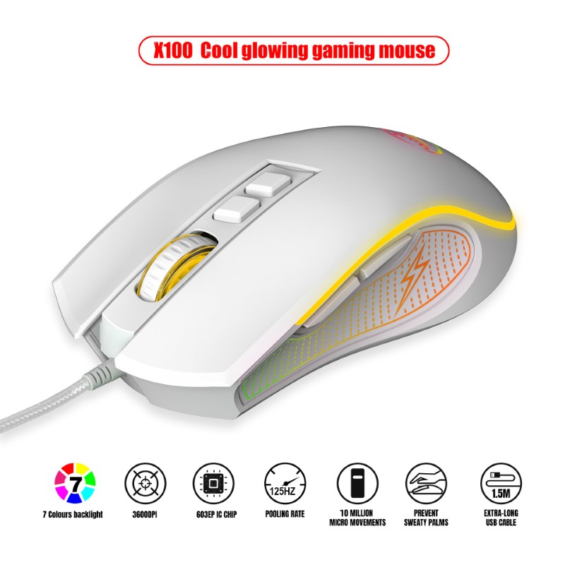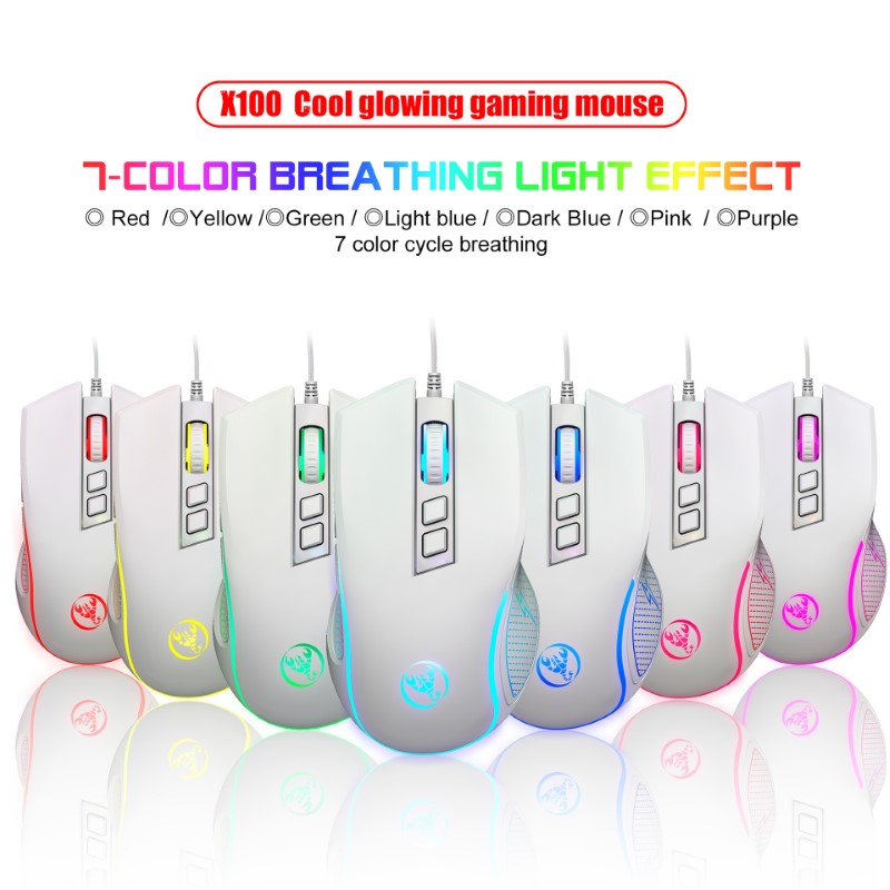 . Chuột LED RGB 3600 DPI Gaming Mouse HXSJ X100 cho máy tính laptop
