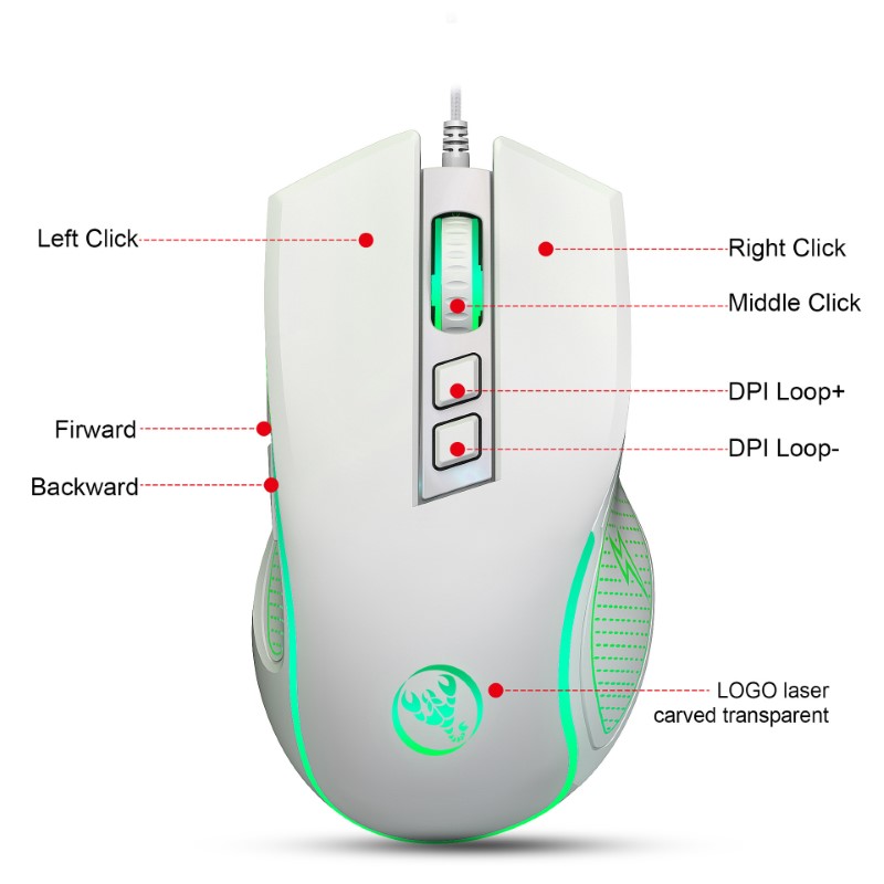 . Số Key : 7 (Left , Right , Bottom , Back , Forward , DPI+ , DPI-).