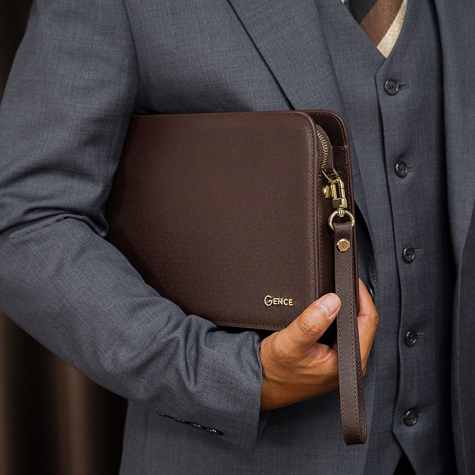 Thông số kỹ thuật Ví Cầm Tay Clutch Da Nam Hàng Hiệu GENCE CK15 Da Bò Khóa Số Cao Cấp Màu Nâu