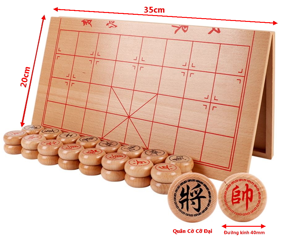 Bộ Cờ Tướng Gỗ + Bàn Cờ Tướng 40*35cm,