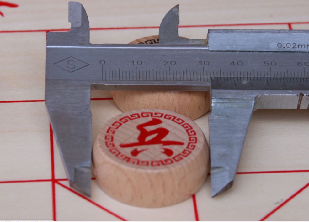 Cỡ trung đường kính 3,4cm dày 1,3cm; quân cờ cỡ đại đường kính 3,9cm dày 1,5cm.