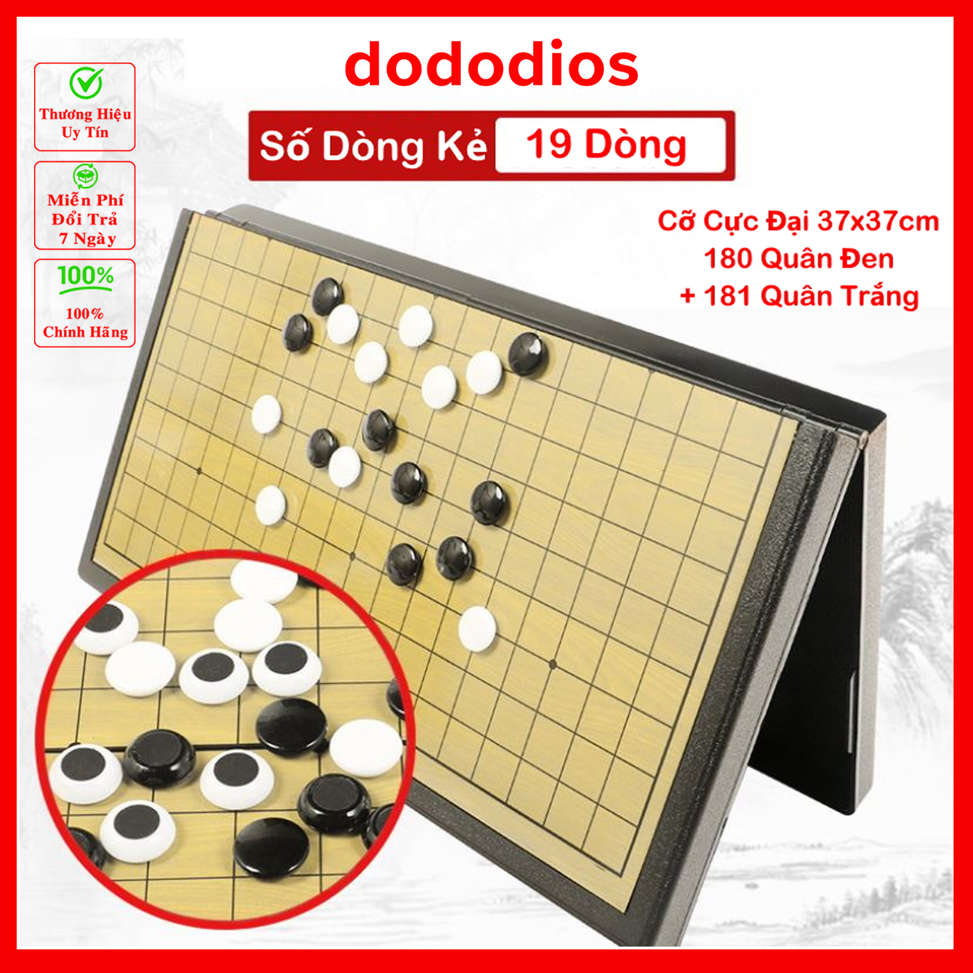 Thông số kỹ thuật Cờ Vây Nam Châm Chất Lượng Cao 28x28 và 37x37cm Có Hộp Đựng Quân Cờ - Chính Hãng dododios