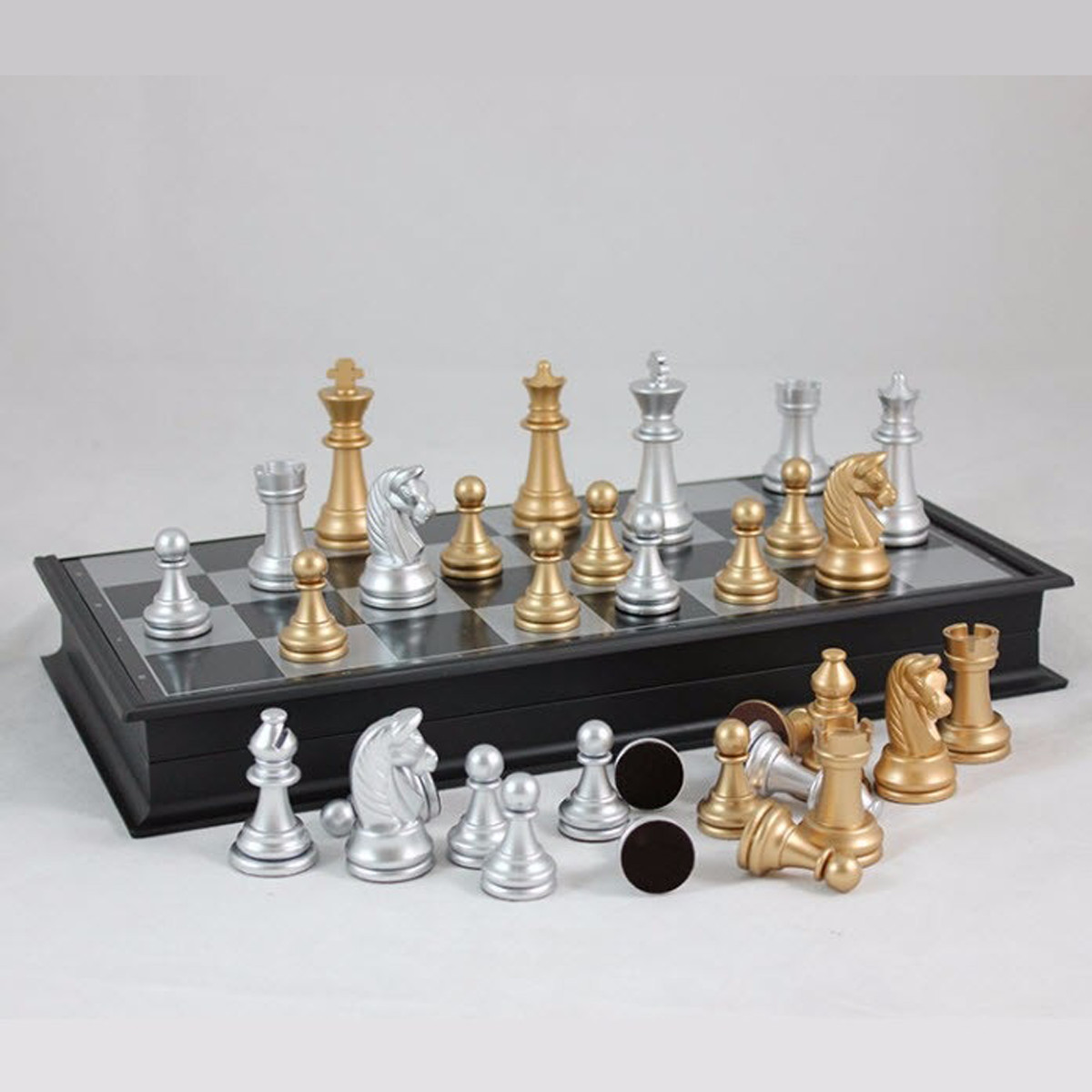 - Quân cờ được làm bao bọc bằng nhựa ABS cứng, an toàn, đúc đặc bởi nam châm khiến cảm giác quân cờ nặng và chắc tay khi chơi, ngoài được phủ sơn nhũ vàng – bạc cực sang.