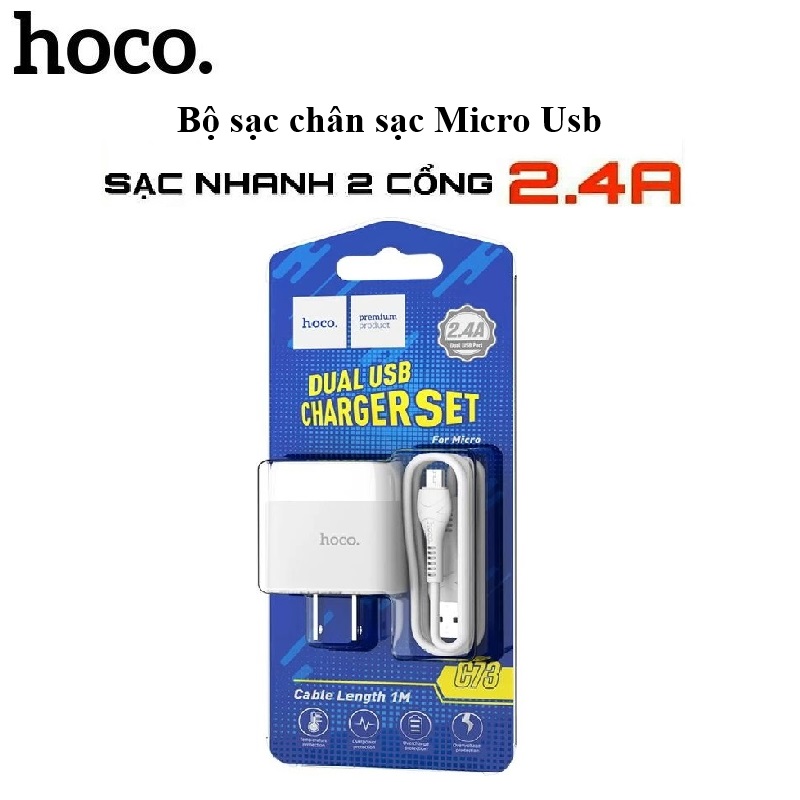 Thông số kỹ thuật CỐC SẠC NHANH 12W 2 CỔNG CHỐNG CHÁY NỔ HOCO C73 - CỦ SẠC ĐA NĂNG 2.4A CHO CÁC DÒNG ĐIỆN THOẠI CHÍNH HÃNG