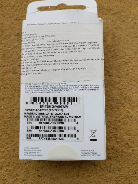 Thông số kỹ thuật Cốc Sạc Samsung Travel Adapter 25W Type C EP-T2510 - Hàng Chính Hãng
