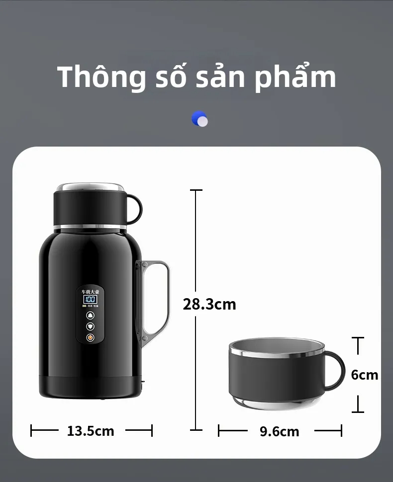 - Dung tích lớn: Đến 1500ml, phù hợp để pha trà, cà phê, sữa hoặc nấu mì cho 4-5 người. Thiết kế nhỏ gọn, dễ dàng đặt trong hộc xe hoặc mang theo khi đi picnic.