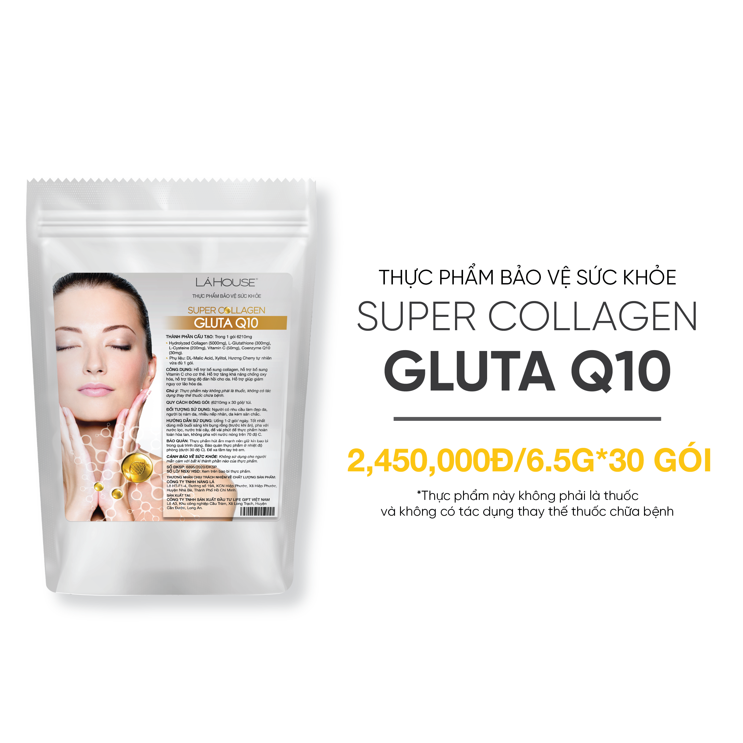 Thông số kỹ thuật Collagen làm giảm nguy cơ lão háo da Lá House Gluta Q10 (6.5g*30gói)