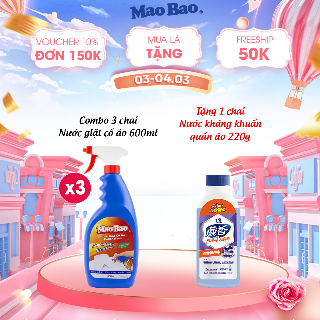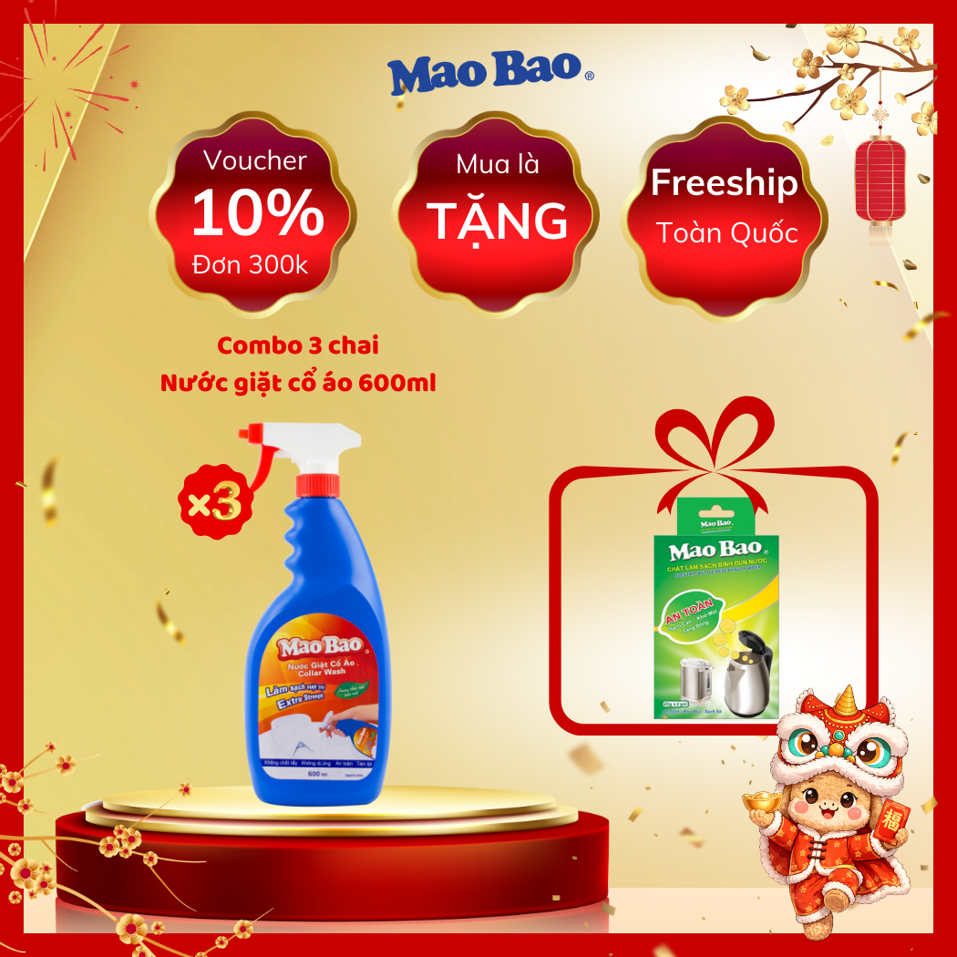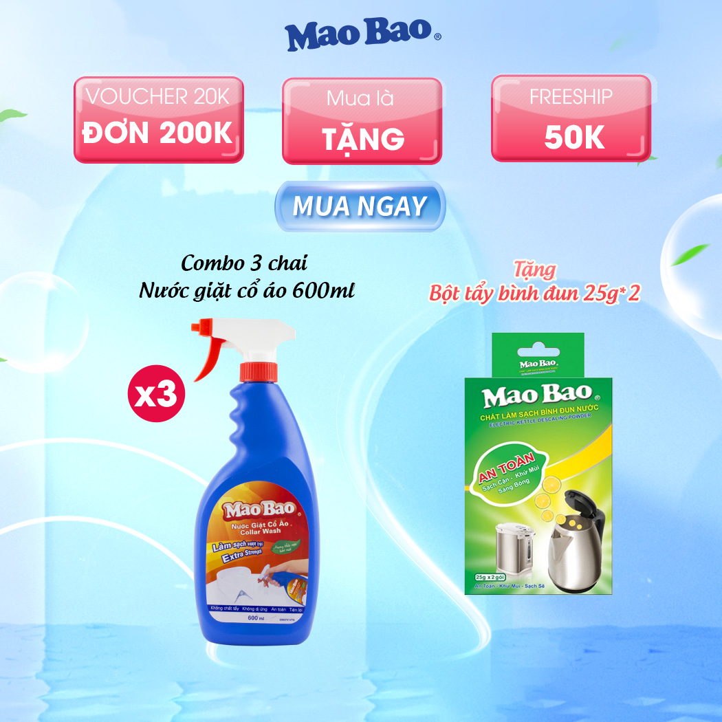 Nước Giặt Cổ Áo Mao Bao 600ml giúp giặt tẩy dễ dàng các vết bẩn trên cổ áo, nách áo, cổ tay, vết bẩn của thức ăn, caphe, nhớt xe, máu, ,…bám trên áo quần.