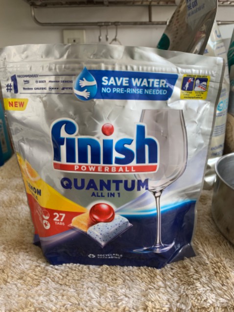 Viên rửa chén Finish Powerball Quantum cùng sức mạnh 12X vượt trội, bao gồm cả khả năng tẩy vết bẩn cứng đầu và bảo vệ chén dĩa thủy tinh và bạc, giúp chén dĩa sạch sẽ và sáng bóng chỉ sau 1 lần rửa!