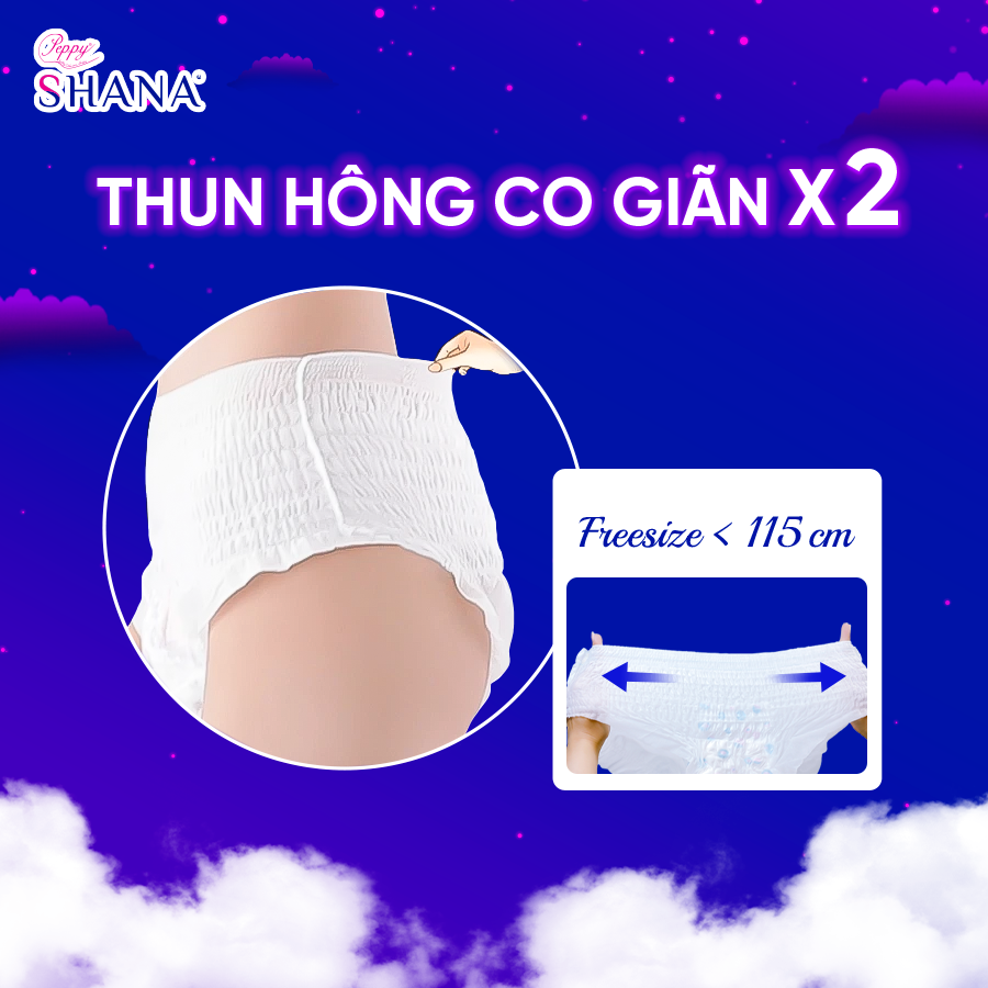 Combo 16 gói Băng Vệ Sinh Quần Peppy Shana Ngày Đêm Siêu Thấm, Freesize, Chống Tràn Tối Đa, Tiết Kiệm (32 miếng)