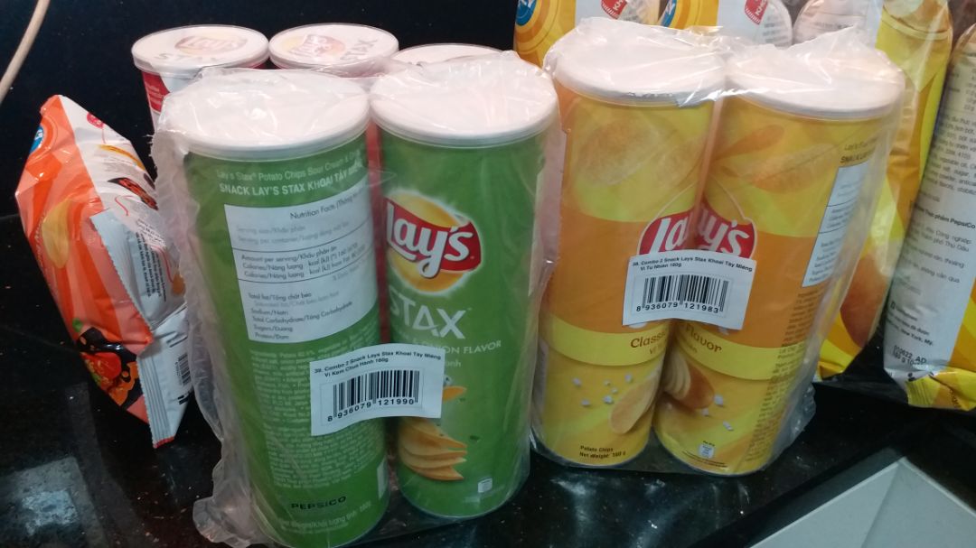 - Combo 2 Snack Lays Stax Khoai Tây Miếng Vị Tự Nhiên 160g được sản xuất từ những nguyên liệu tự nhiên như khoai tây, dầu cám gạo, gia vị tự nhiên… theo công thức đặc biệt mang đến hương vị thơm ngon hấp dẫn, kích thích vị giác.