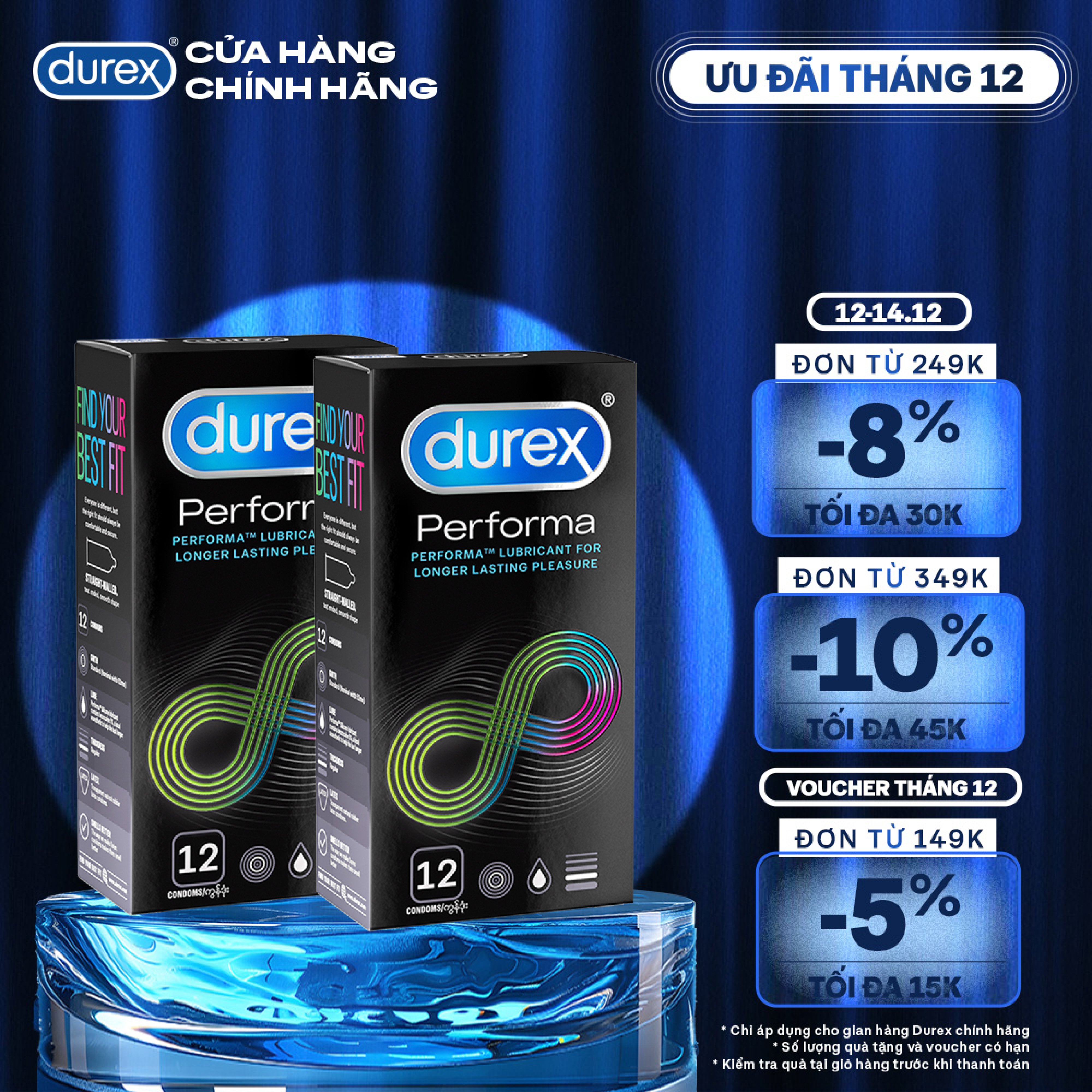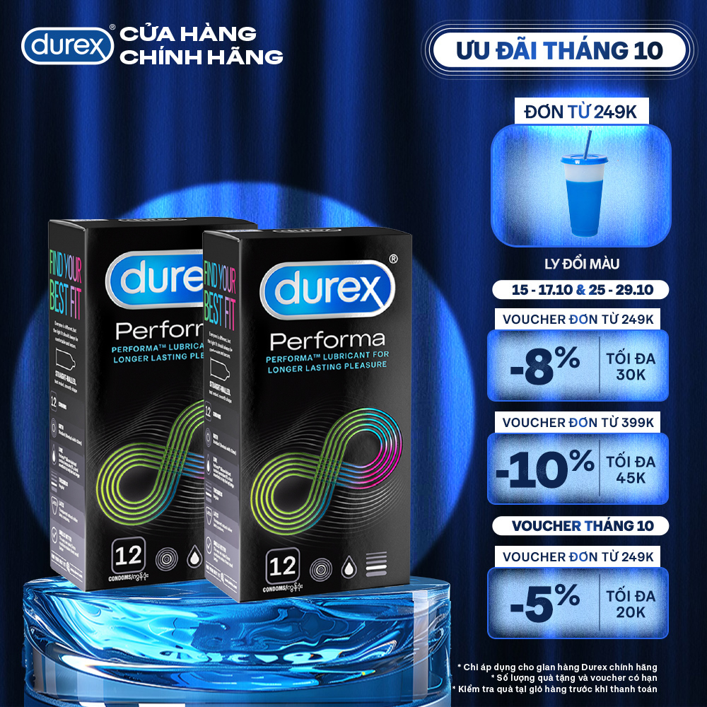 - Bao cao su Durex Performa được thiết kế đặc biệt để giúp kéo dài cuộc yêu. Durex Performa chứa benzocain 5%, giúp trì hoãn cực khoái và kéo dài thời gian yêu, cho bạn điều khiển cuộc yêu theo cách của riêng mình. Bao cao su Durex Performa là bí quyết tuyệt vời để giữ lửa cuộc yêu.