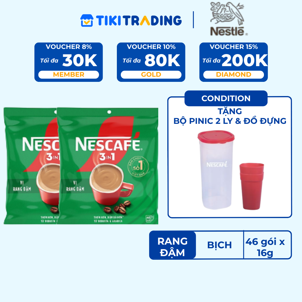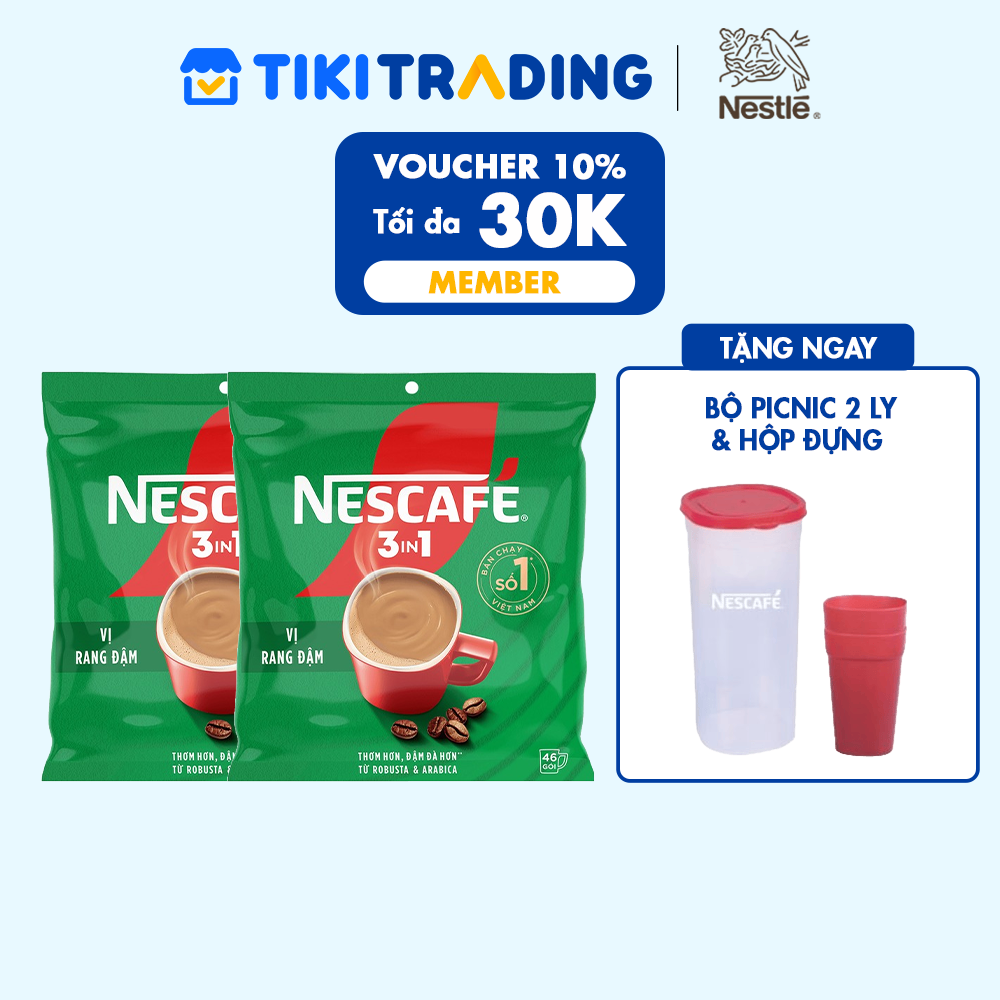 Thông số kỹ thuật [Tặng Bộ 2 ly thủy tinh] Combo 2 Bịch Cà phê Hòa tan NESCAFÉ VỊ RANG ĐẬM 46 gói Đậm Thơm Hoàn Hảo