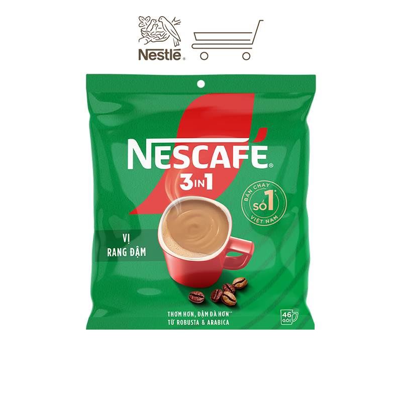 - Nescafé 3IN1 VỊ RANG ĐẬM - Vị hài hòa, đậm hương cà phê tinh tế từ sự kết hợp giữa Robusta và Arabica.