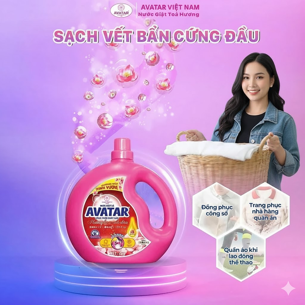• Công dụng 5 trong 1 của Nước Giặt Xả Vải Hương Hoa Anh Đào Avatar: