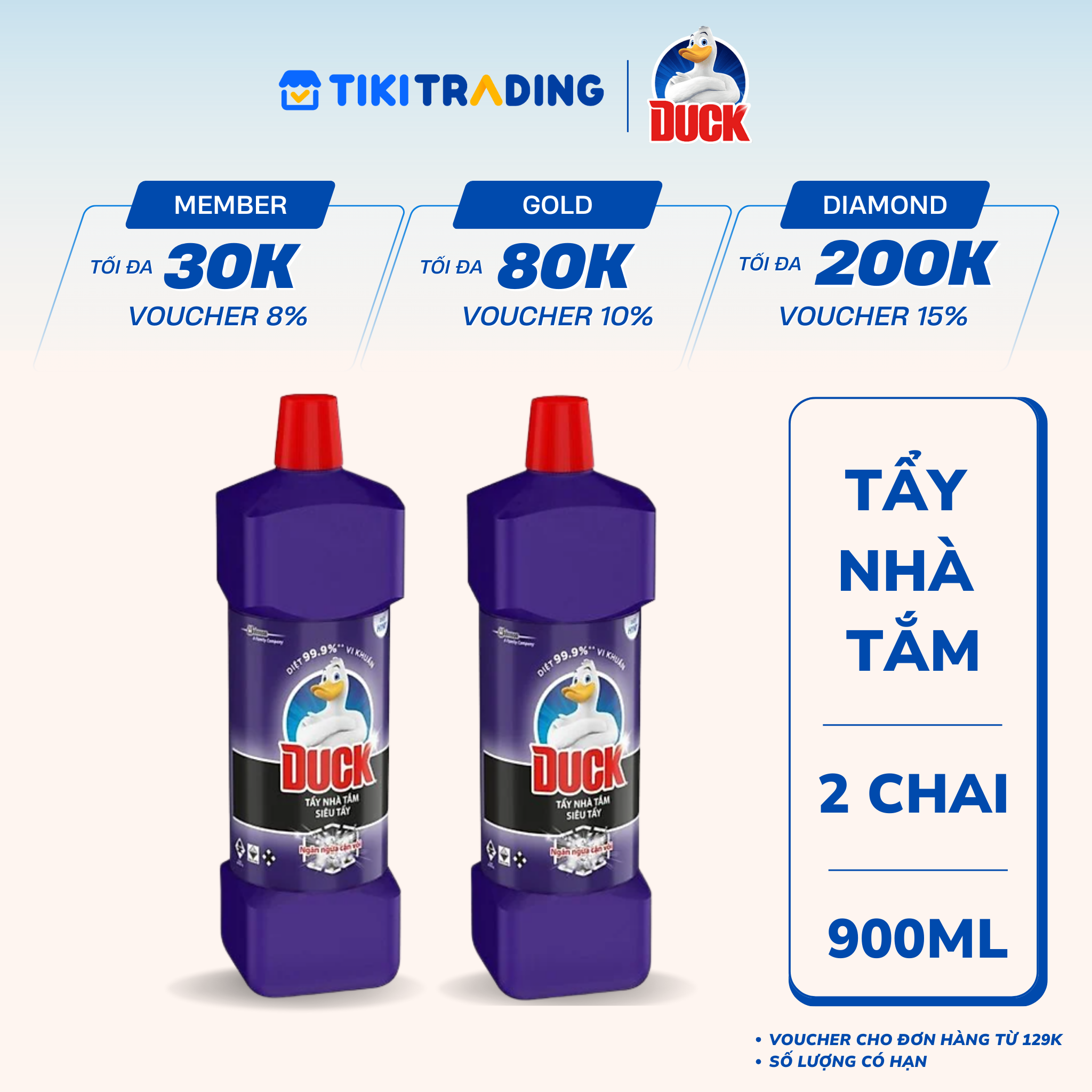 Thông số kỹ thuật Combo 2 Chai Tẩy Rửa Nhà Tắm DUCK Siêu Tẩy Pro 900mlx2