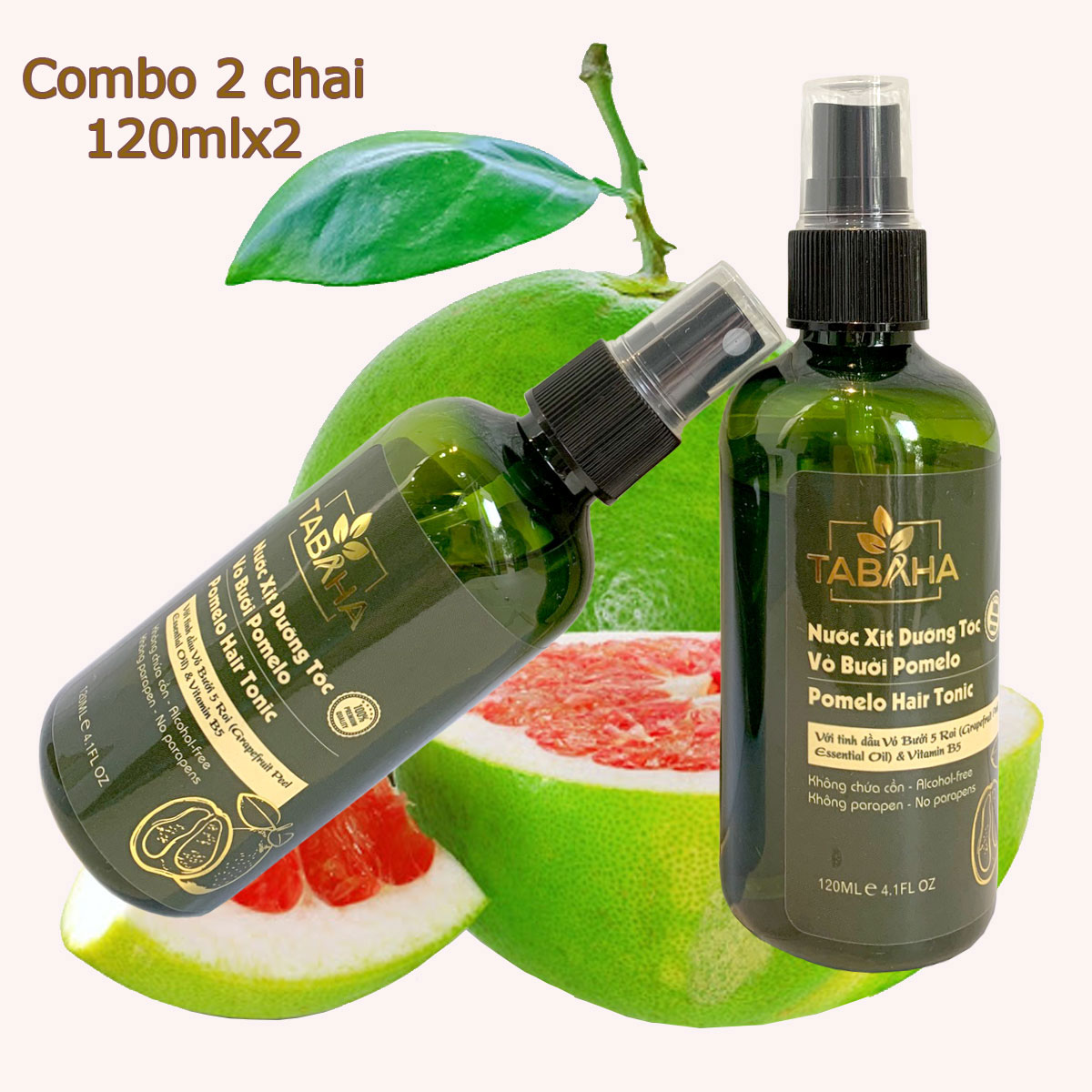 Thông số kỹ thuật Combo 2 Chai xịt tinh dầu bưởi kích mọc tóc, giảm rụng tóc Pomelo Tabaha 120ml cho tóc dày và dài hơn gấp 2 đến 3 lần
