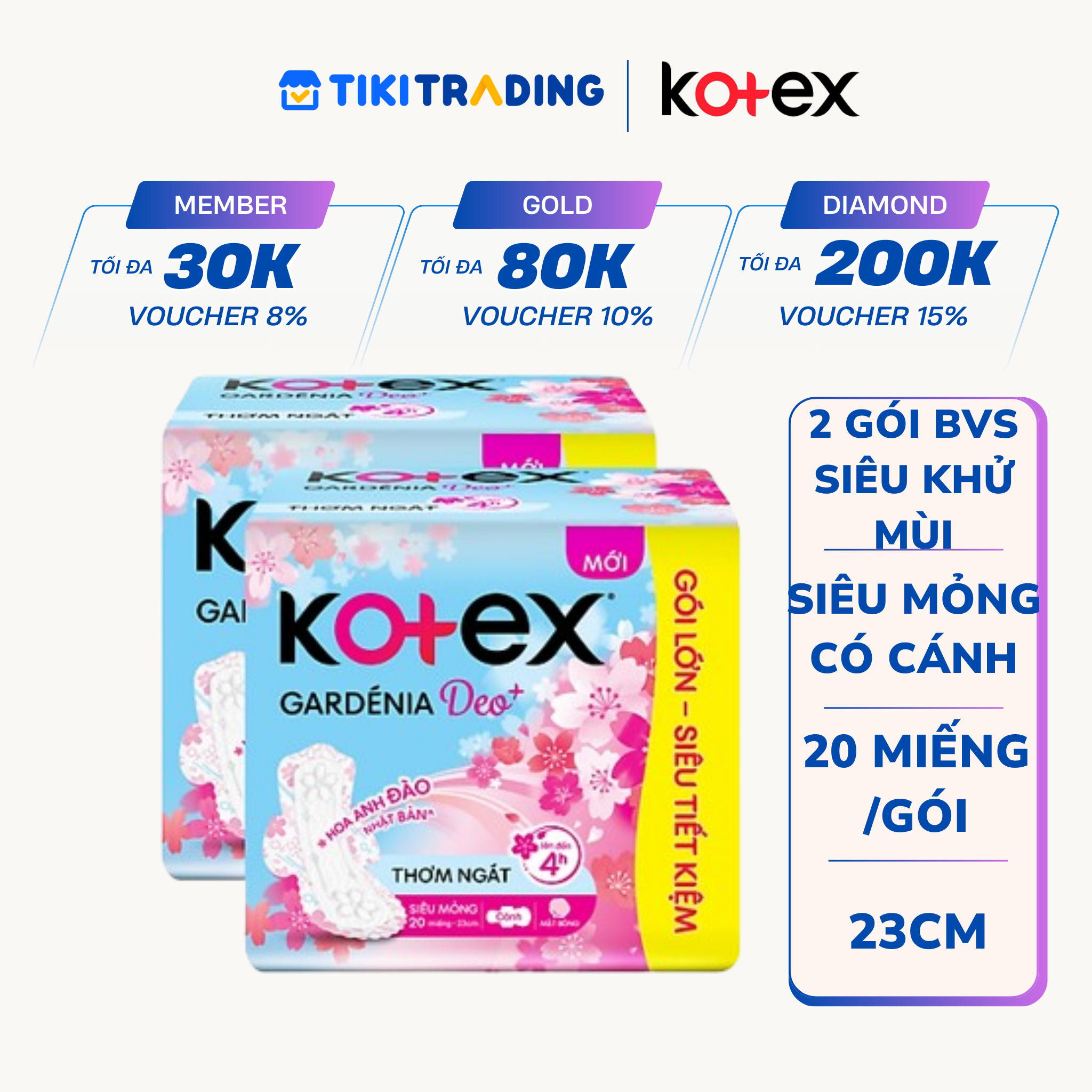 Kotex Gardenia Deo+ Hoa Anh Đào Nhật Bản siêu mỏng cánh, gói 20 miếng - Siêu khử mùi cho bạn gái tự tin, thoải mái