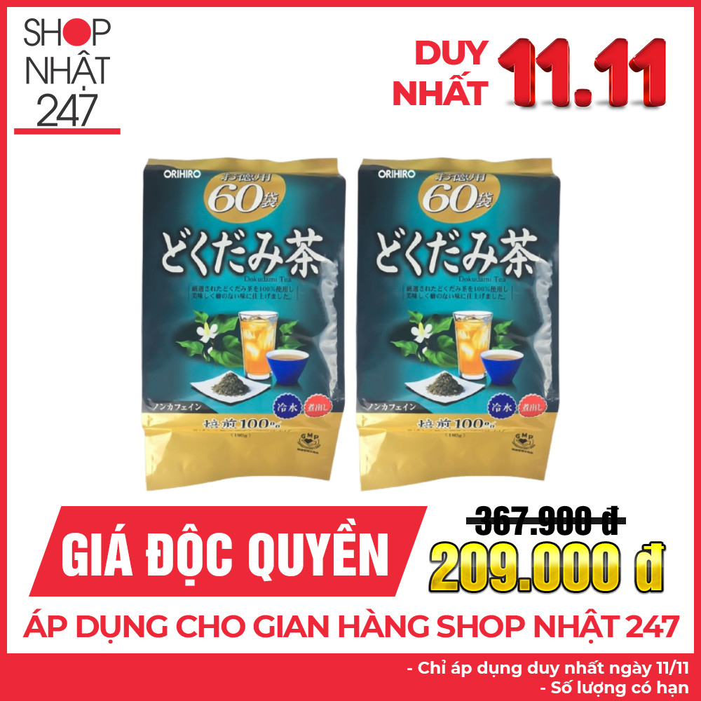 Trà diếp cá mát gan, giải độc Orihiro gói 60 túi Nhật Bản + Tặng Gói Trà Sữa Matcha Macca
