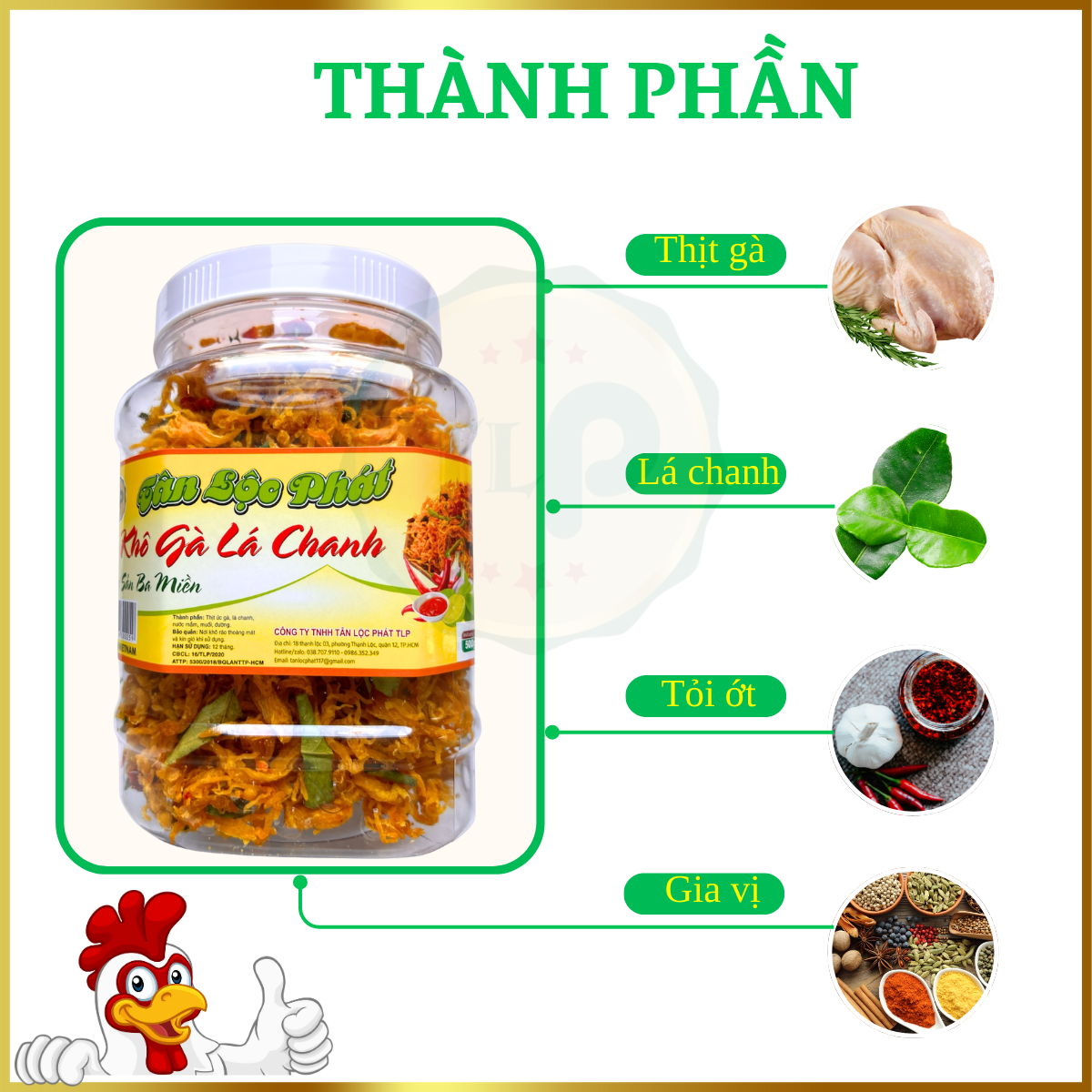 Thông số kỹ thuật KHÔ GÀ LÁ CHANH COMBO 1KG - MỖI HŨ 500G