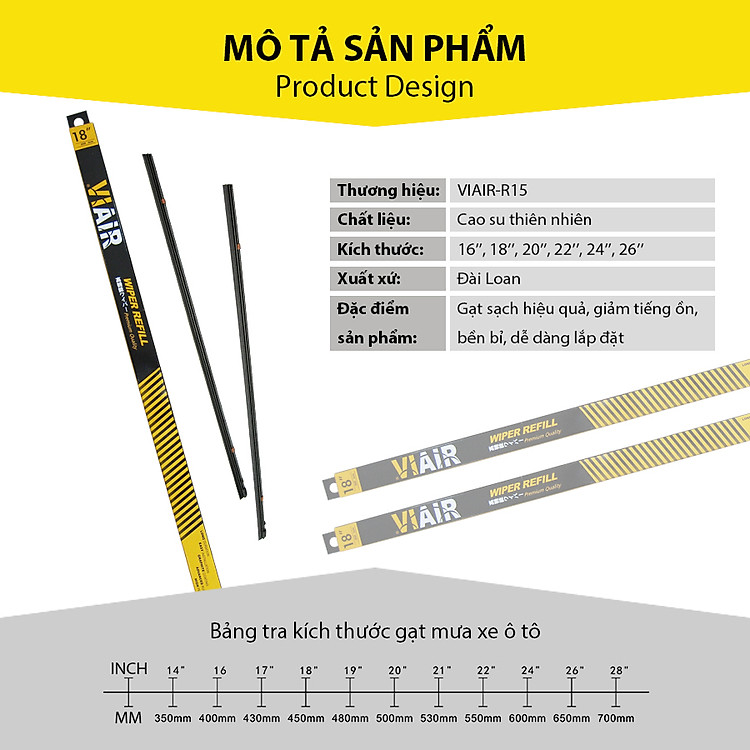 Giới thiệu Lưỡi gạt mưa loại A VIAIR R15 (20 inch/500 mm)