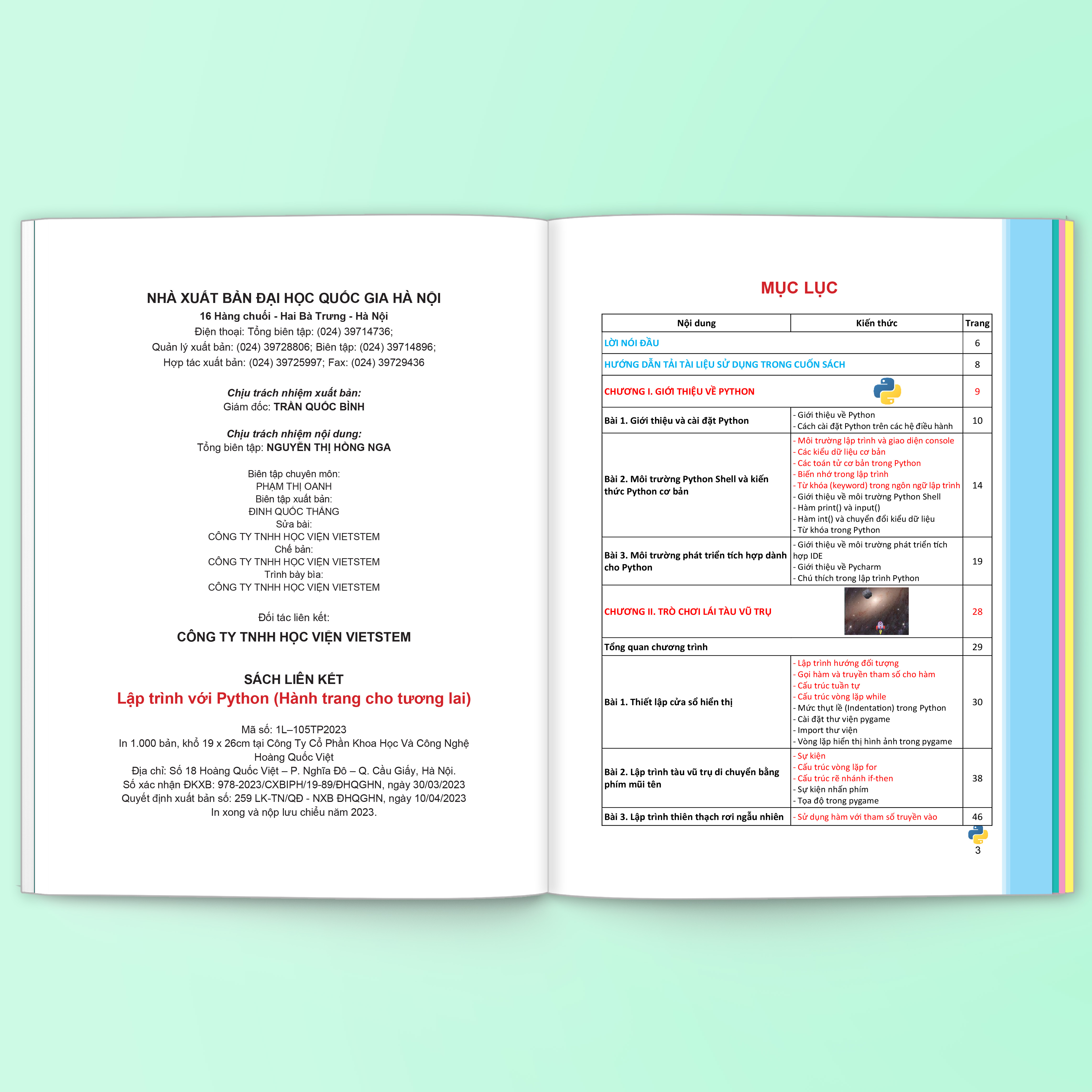 Để sử dụng sách hiệu quả, người học cần có kiến thức cơ bản về lập trình và ngôn ngữ lập trình Python. Tìm hiểu thêm trong cuốn “Lập trình với Python” (Học viện VIETSTEM, NXB Đại học Quốc gia Hà Nội).