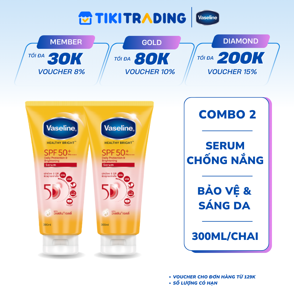 Thông số kỹ thuật Combo 2 Serum chống nắng cơ thể Vaseline 50x bảo vệ da với SPF 50+ PA++++ giúp da sáng hơn gấp 2X 300ml