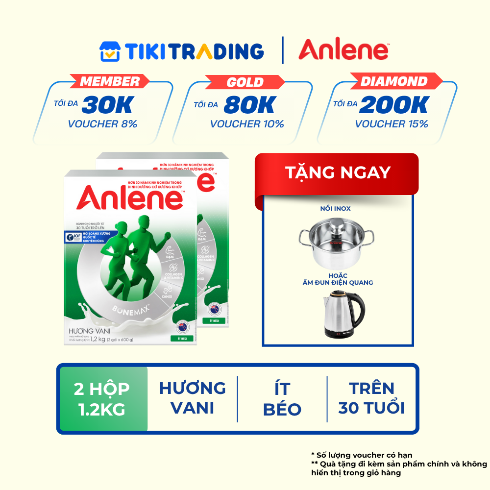Thông số kỹ thuật Combo 2 Sữa Bột Anlene Hương Vanilla (Hộp giấy 1200g)