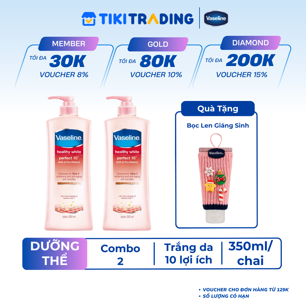 Thông số kỹ thuật Combo 2 Sữa Dưỡng Thể Vaseline Trắng Da 10 Lợi Ích (350ml)
