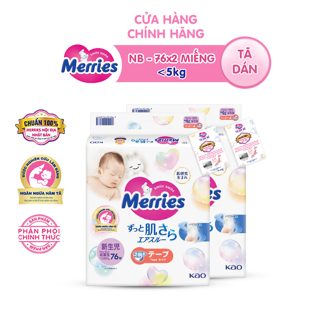 Combo 2 Tã/bỉm dán Merries Đủ Size NB76/S70/M56/L48/XL40