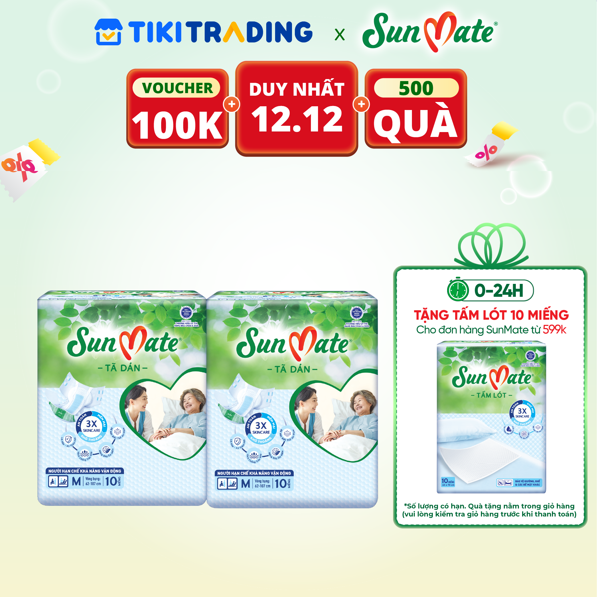 Combo 2 Tã Dán Người Lớn SunMate G2 Size M10 (10 Miếng)