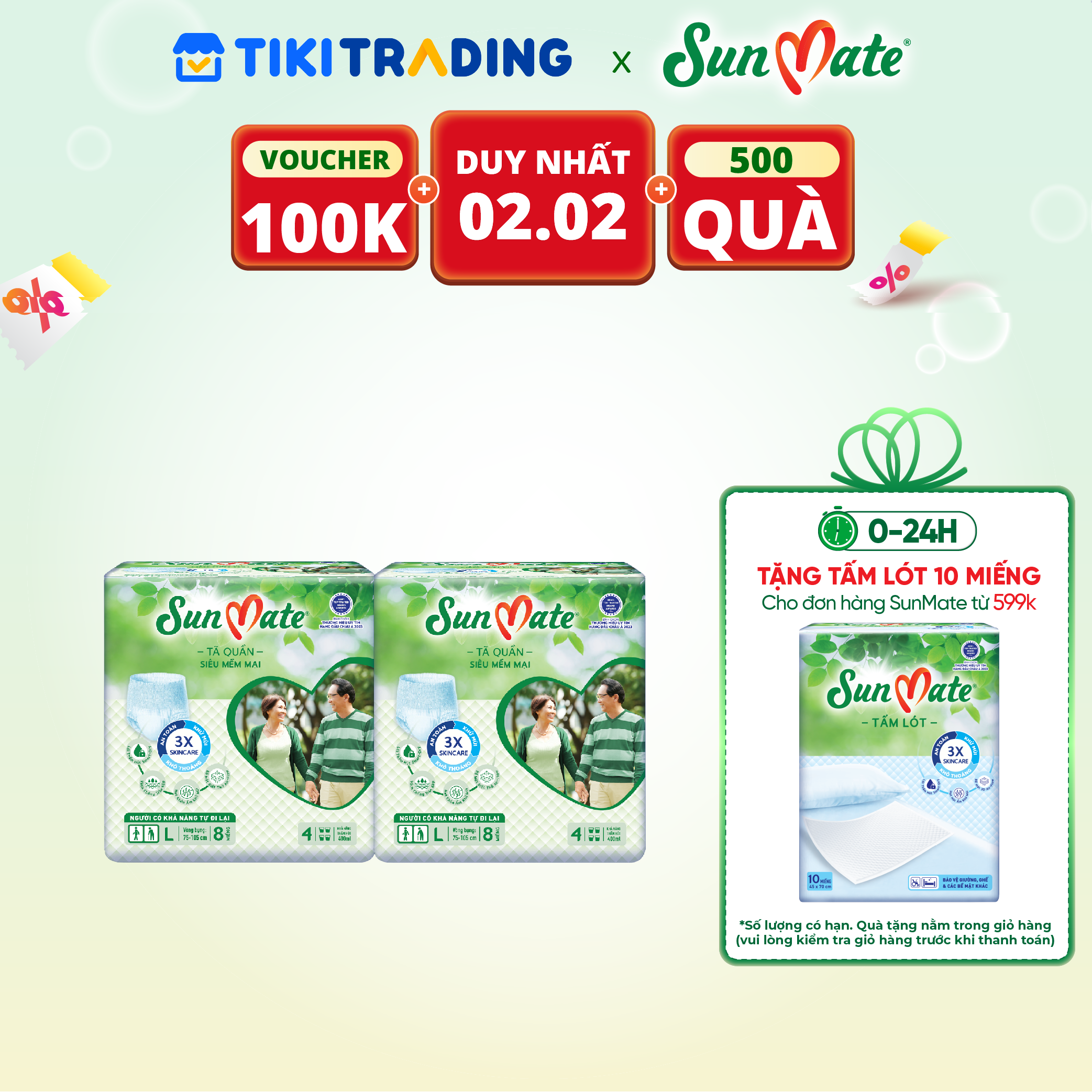 Combo 2 Tã Quần Người Lớn Sunmate Mềm Mại L8 (8 Miếng)