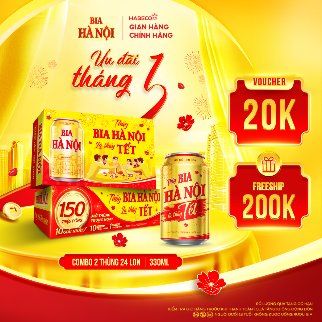 Combo 2 Thùng Bia Hà Nội phiên bản Tết 2026 - Thùng 24 lon 330ml