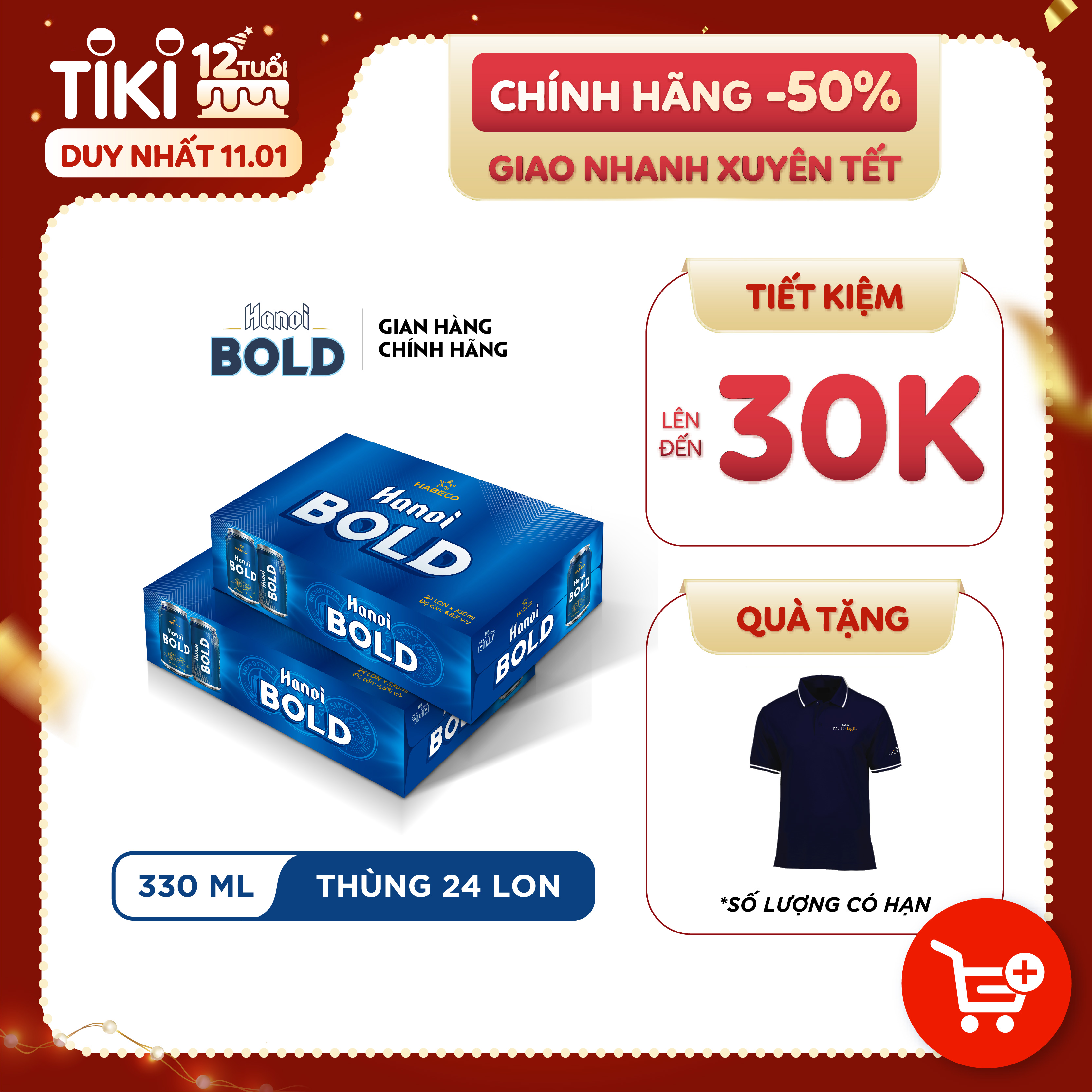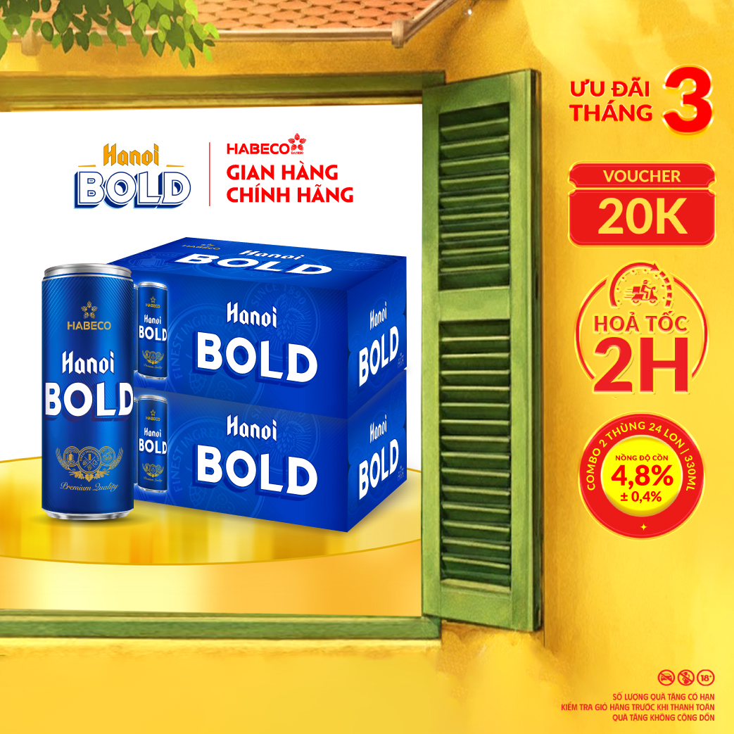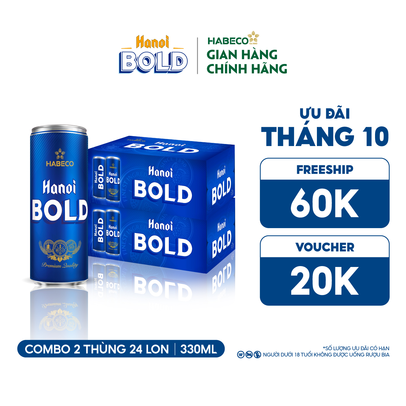 Combo 2 Thùng Bia Hanoi BOLD - Thùng 24 lon 330ml