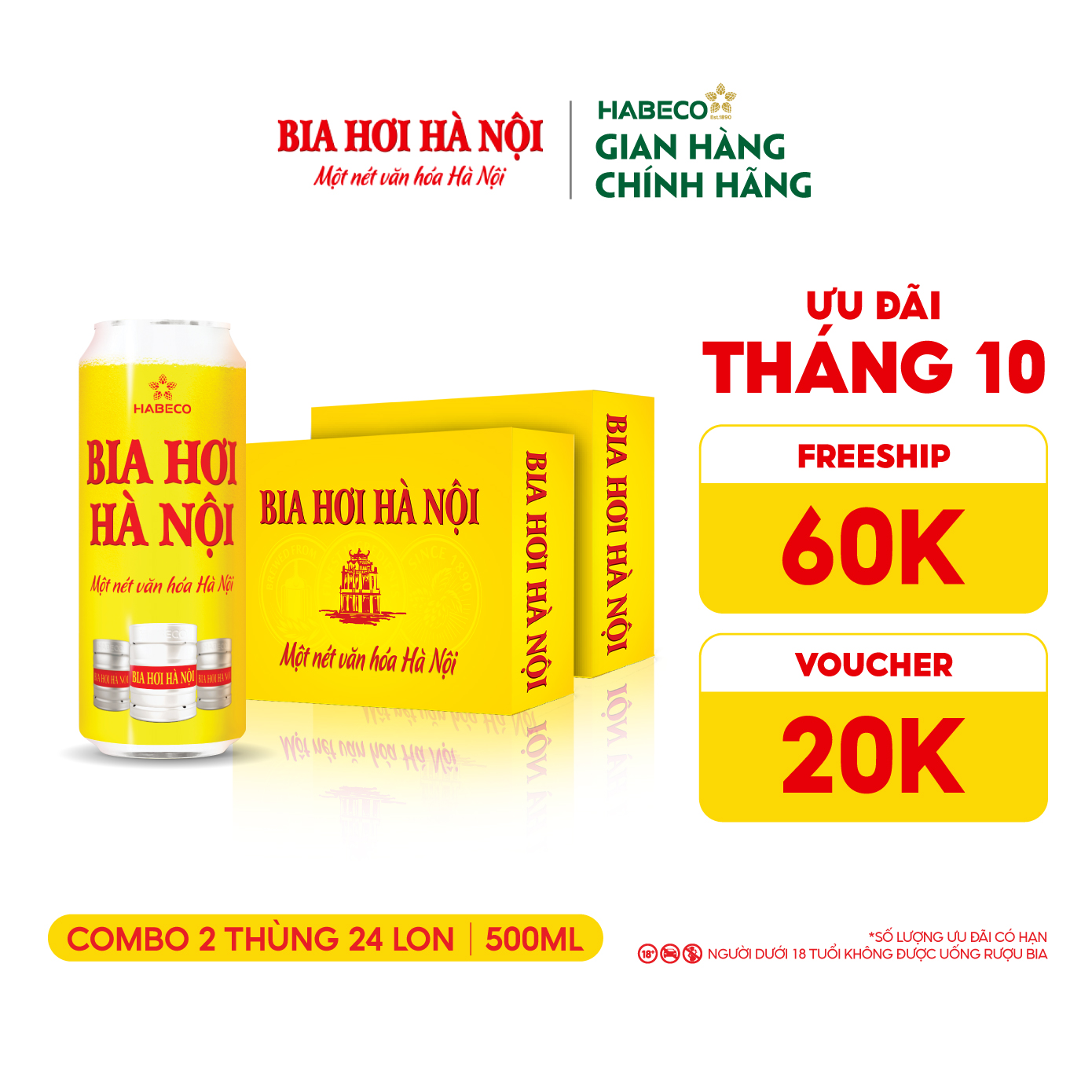 Combo 2 Thùng Bia Hơi Hà Nội - Thùng 24 lon 500ml - Phiên bản Tết