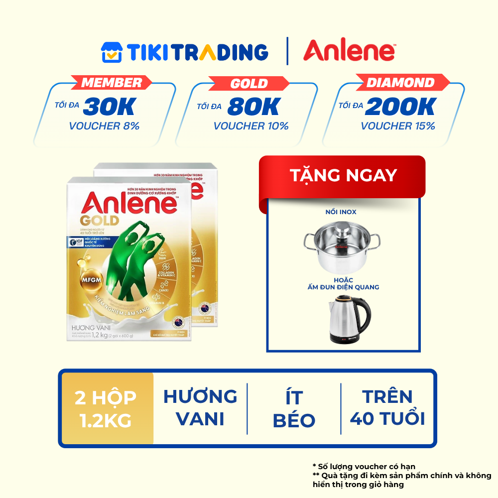 Thông số kỹ thuật Combo 2 TPBS Anlene Gold hương vani 1.2kg tặng nồi inox hoặc ấm đun điện quang
