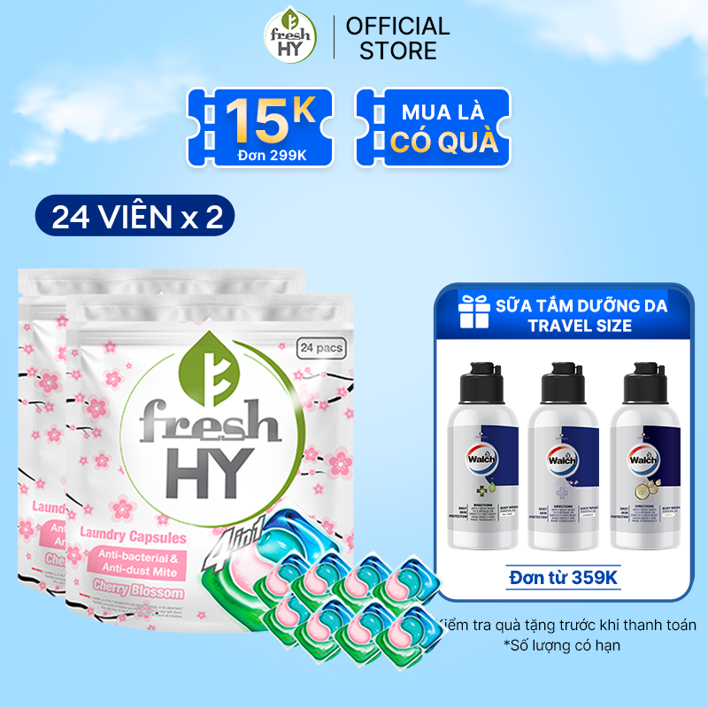 Thông số kỹ thuật Combo 2 Túi Viên Giặt Xả Tiện Lợi 4 trong 1 Fresh Hy Hương Hoa Công Nghệ Nhật Bản (24 Viên/ Túi)