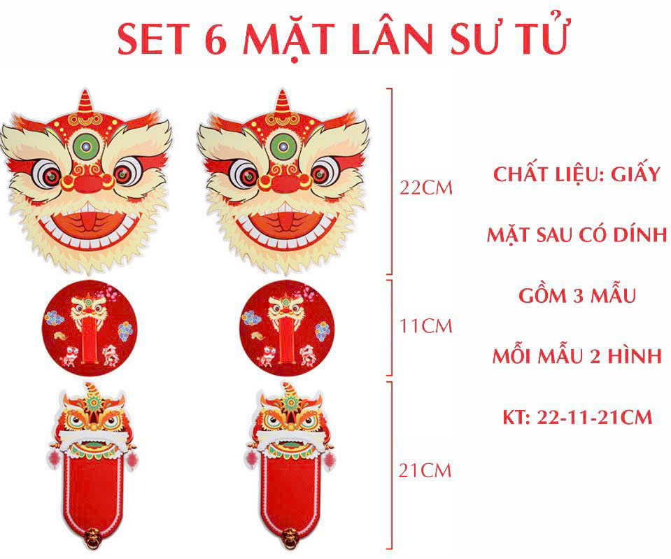Thông số kỹ thuật BỘ QUẠT GIẤY ĐỎ 6 CHIẾC – HÌNH ĐẦU LÂN TRANG TRÍ TẾT / TRUNG THU (khách tự ráp lại thành phẩm theo hình)