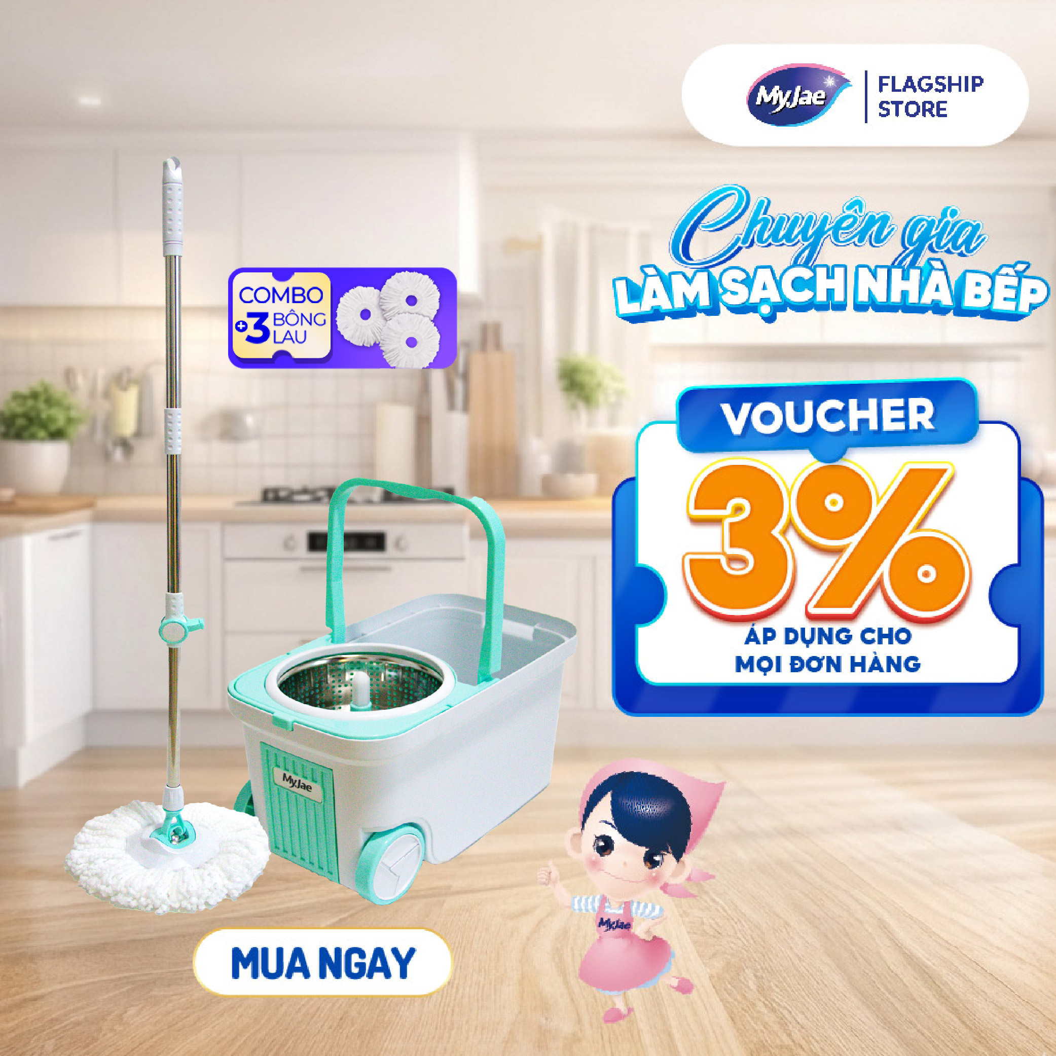 Thông số kỹ thuật Combo 3 Bông Lau + 1 Bộ Lau Nhà MyJae Đài Loan Sợi Microfiber Xoay Siêu Tốc 360 Độ Thông Minh 129.5cm