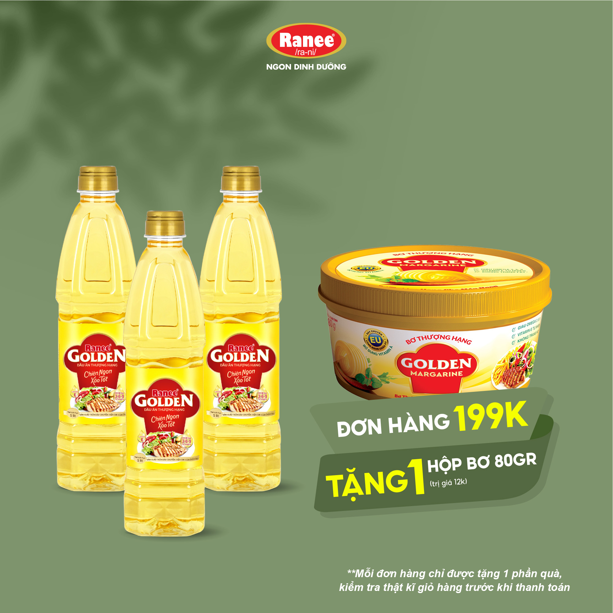 Thông số kỹ thuật {Đơn 199k tặng hộp bơ 80g} Combo 3 chai dầu ăn Ranee Golden 1 lít (1 lít/chai x 3 chai)