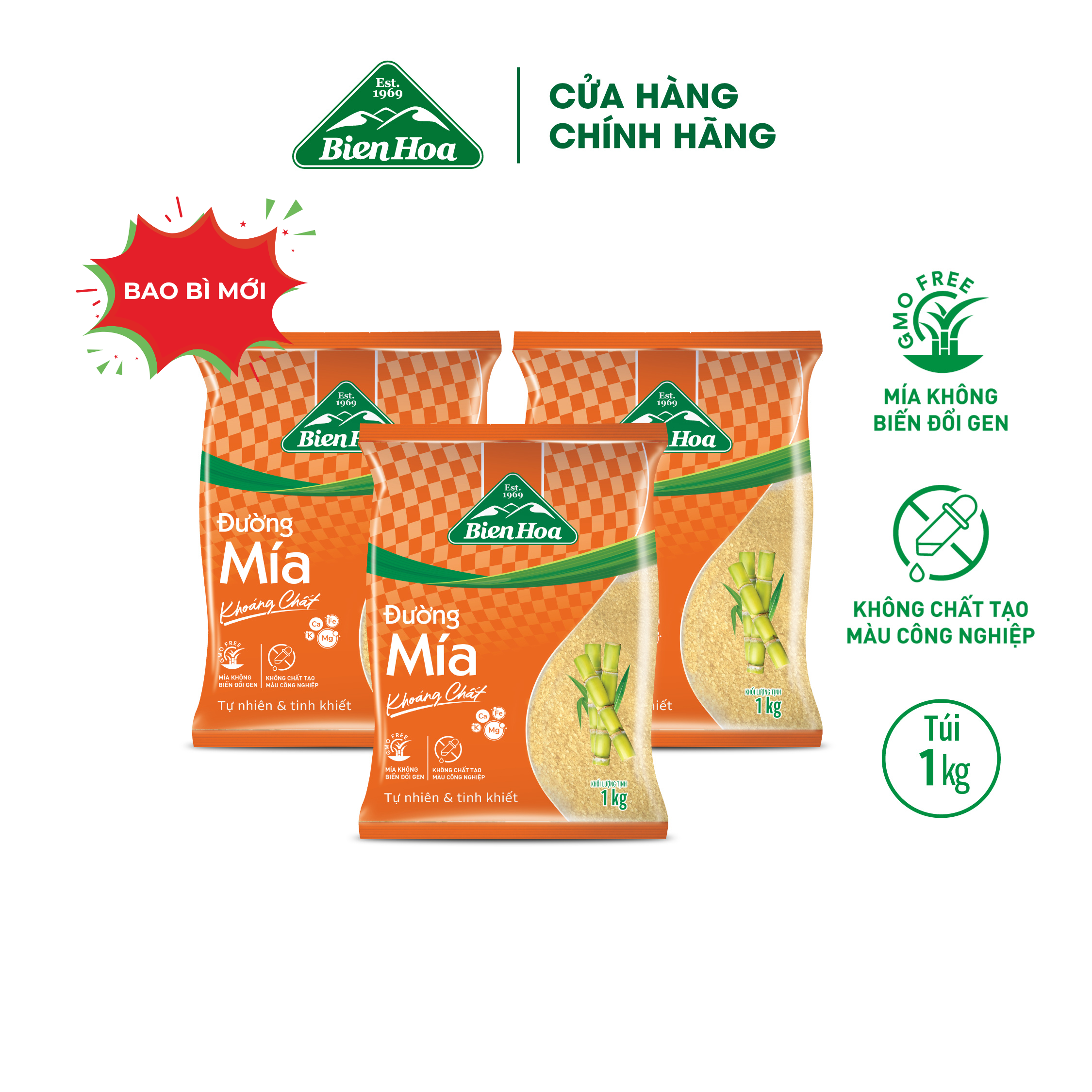 Thông số kỹ thuật Combo 3 Đường mía khoáng chất Biên Hòa 1kg/túi