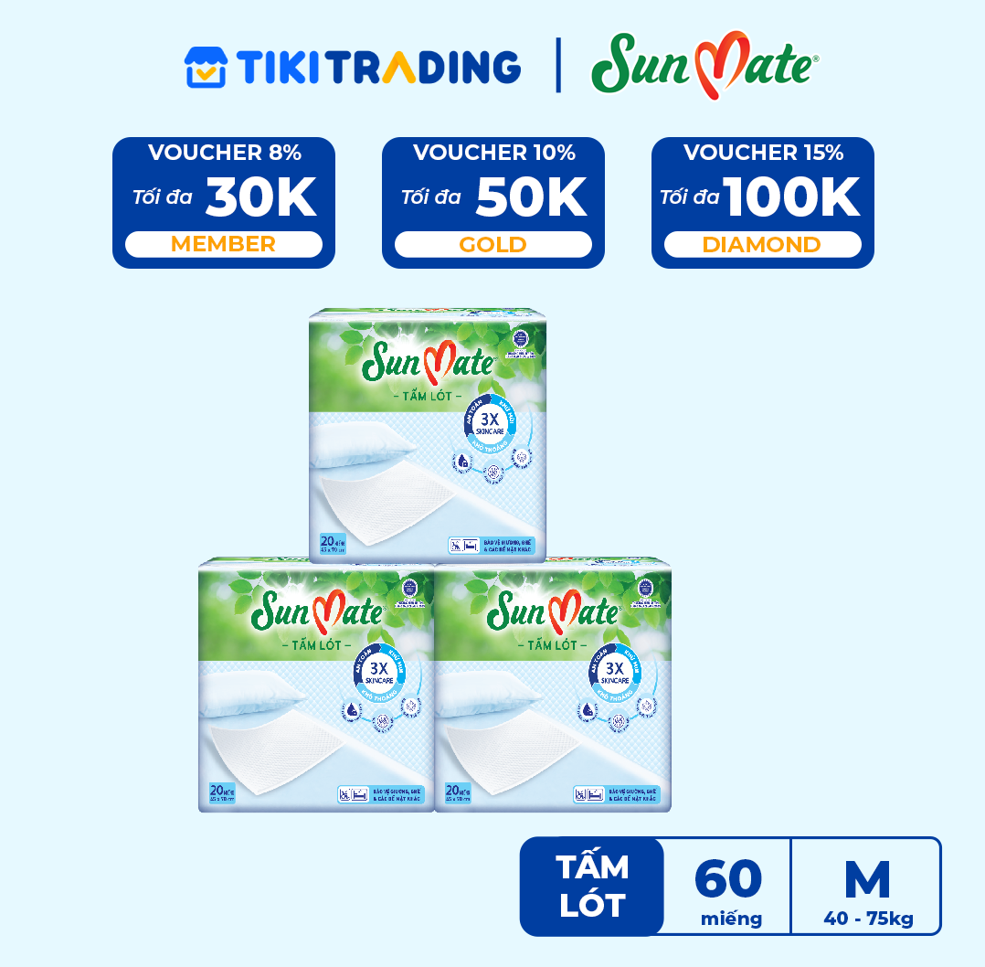 - Sản phẩm tấm lót SunMate dành cho cả nam và nữ, phù hợp với người hạn chế khả năng đi lại. Hạt gel tác động kép siêu thấm hút và kháng khuẩn hiệu quả cùng lớp dẫn thấm thông minh thấm hút nhanh, ngăn thấm ngược hiệu quả, giúp luôn khô thoáng, thoải mái cho người sử dụng.