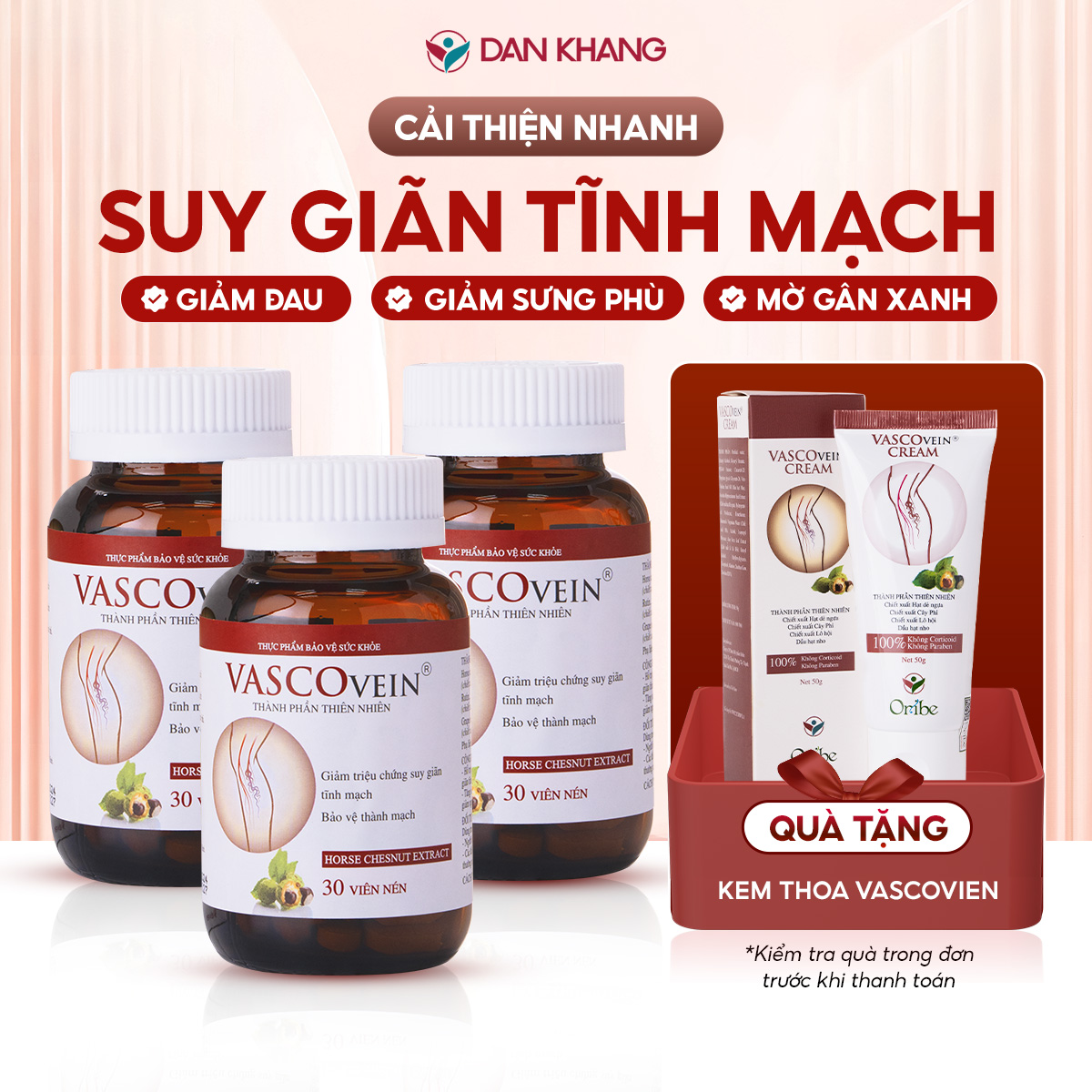 Thông số kỹ thuật Combo 3 Thực phẩm chức năng Dân Khang Pharma Viên Uống Làm Giảm Và Phòng Ngừa Suy Giãn Tĩnh Mạch Vascovein (30 viên/hộp)