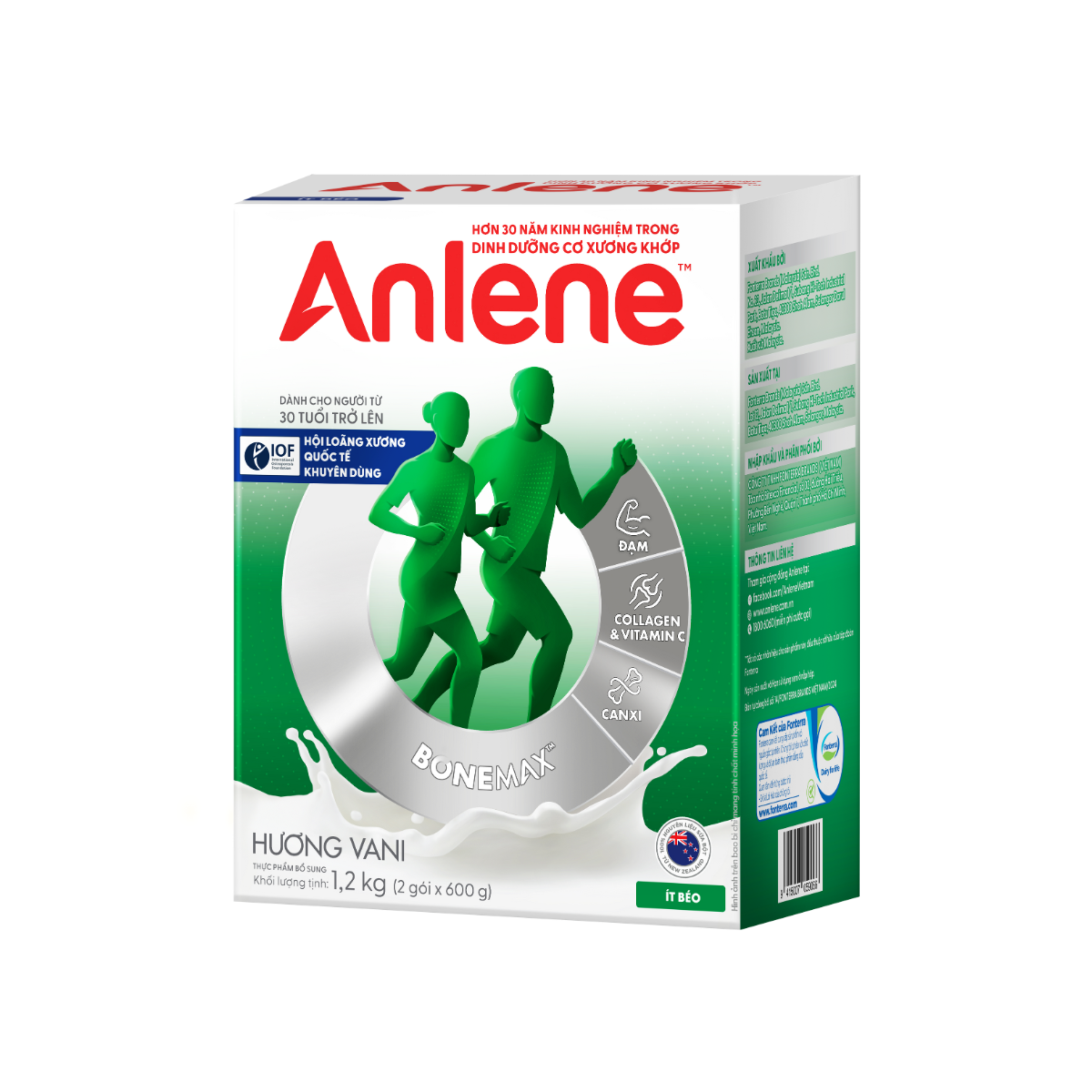 Anlene - Nhãn hiệu được Hội loãng xương quốc tế khuyên dùng, giúp giảm nguy cơ lão hóa xương và tăng cường sức khỏe cơ sau 4 tuần.