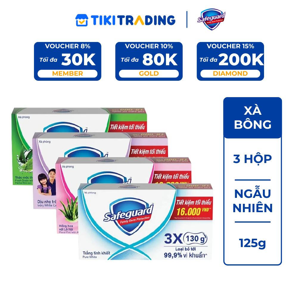 Thông số kỹ thuật Combo 3 Xà Bông Cục SAFEGUARD Sạch 99,9% Vi Khuẩn & Dịu Nhẹ Cho Da 130g/125g
