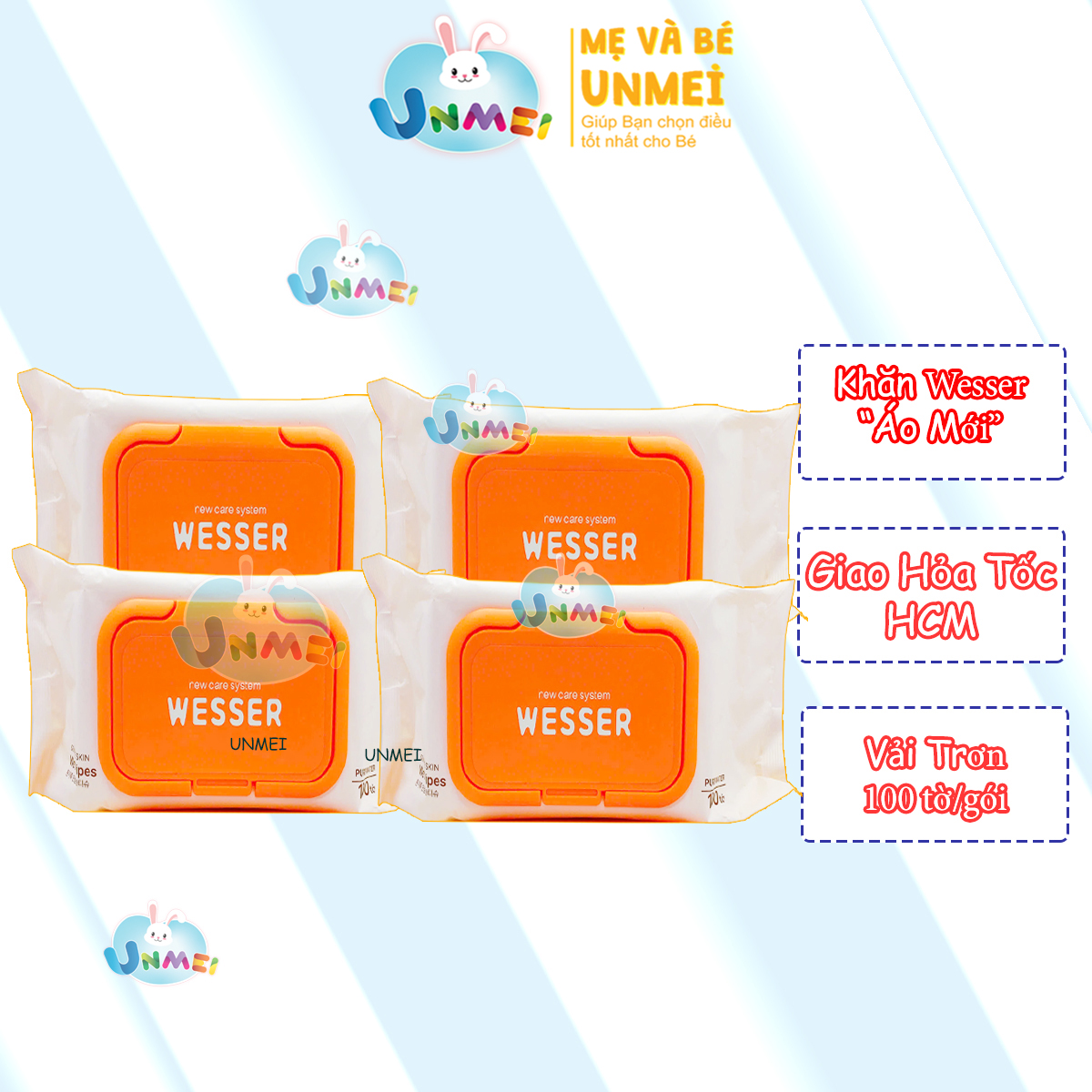 - Combo 4 Gói Khăn Ướt Wesser không hương, an toàn cho bé